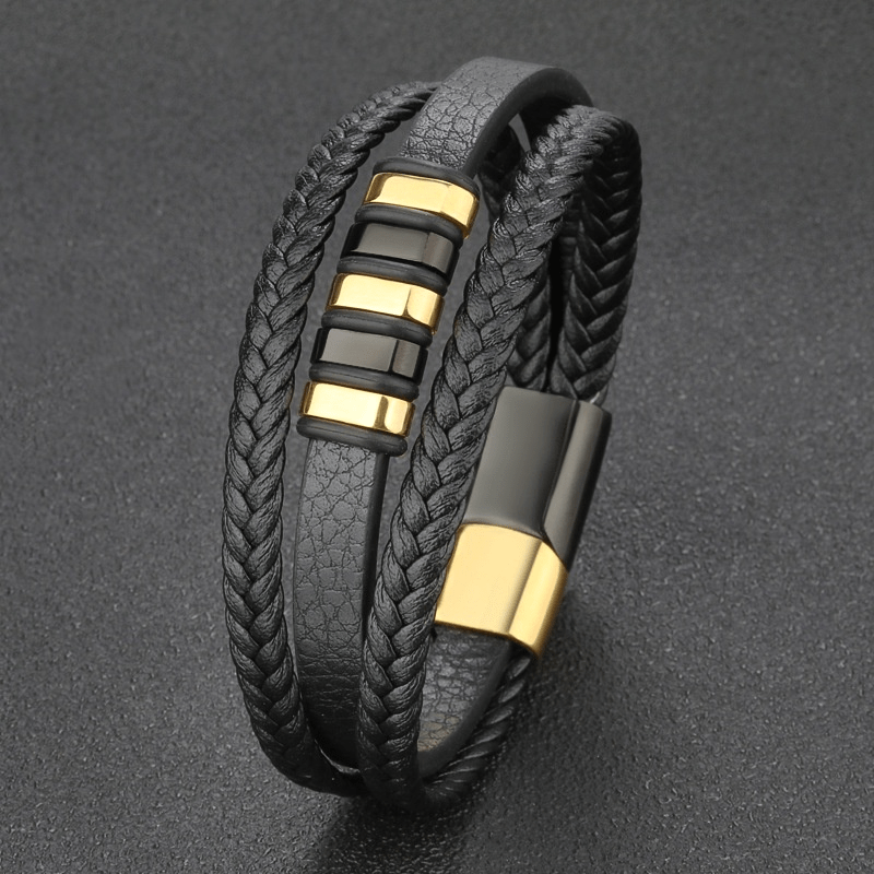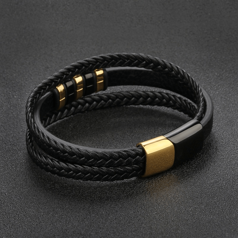 Add a touch of sophistication with this leather braided bracelet. Perfect for casual or formal wear.