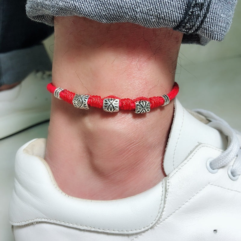 This adjustable leaf anklet is a lucky charm for men, made with woven rope. Perfect for everyday wear.
