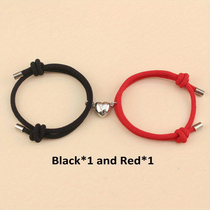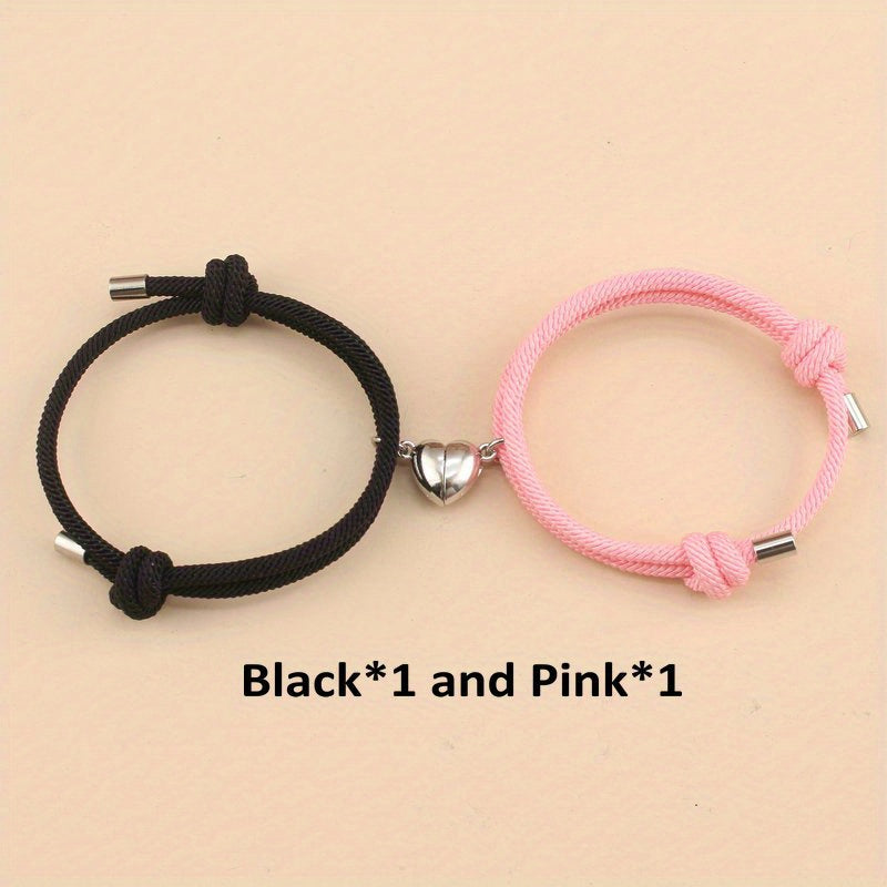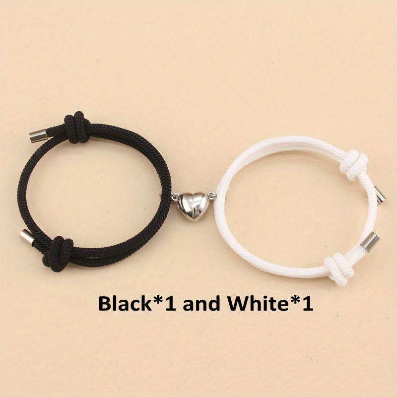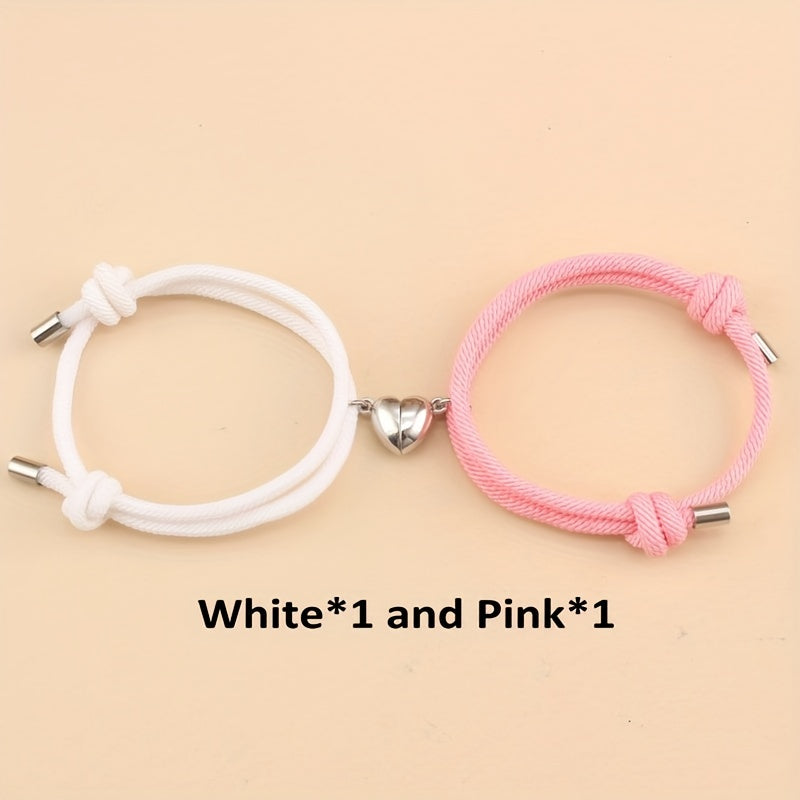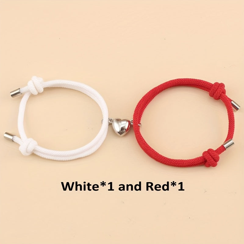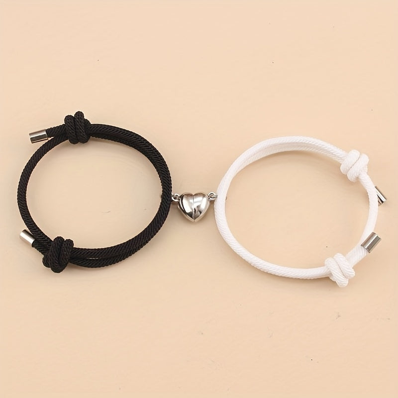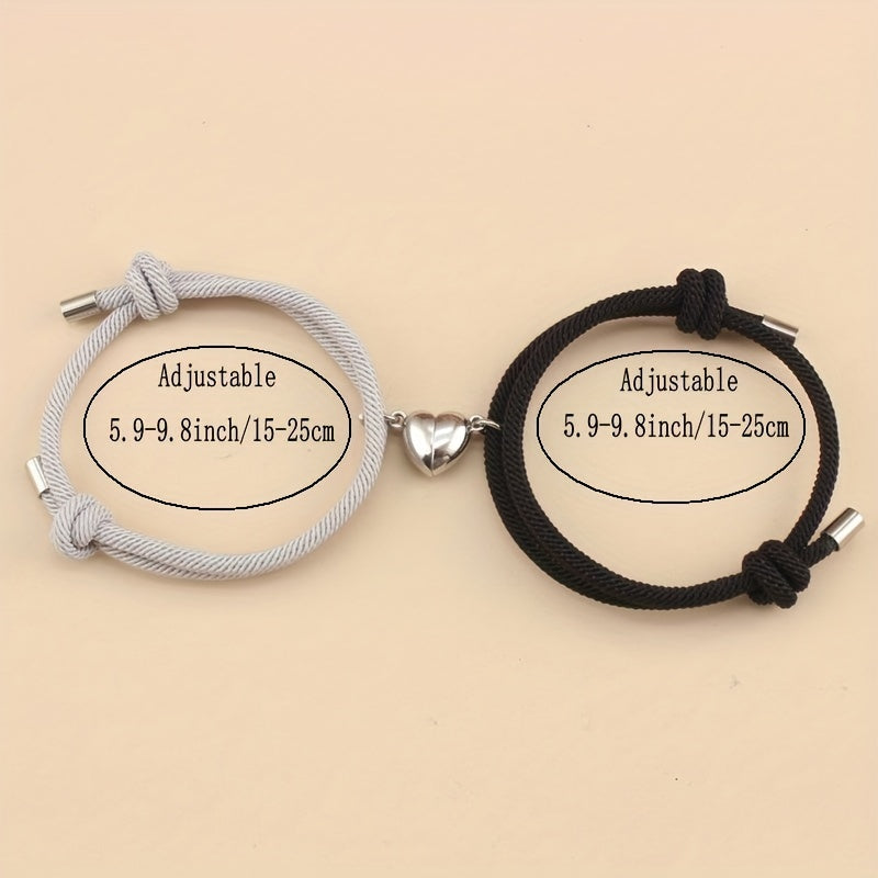 Surprise your loved one with this pair of magnetic heart charm bracelets, featuring a braided rope design. Perfect for holidays or birthdays.