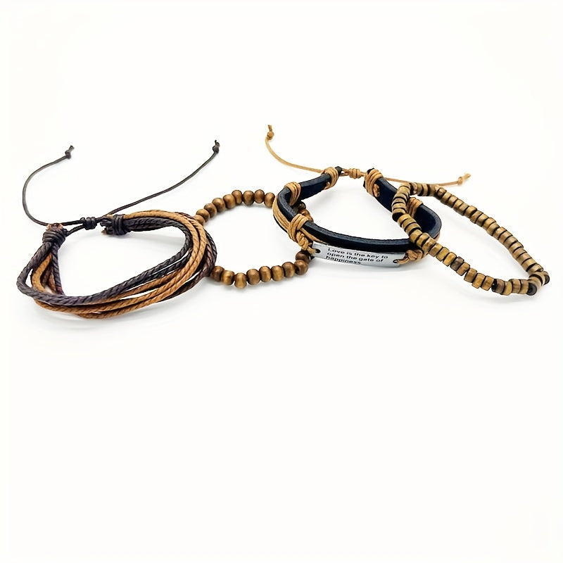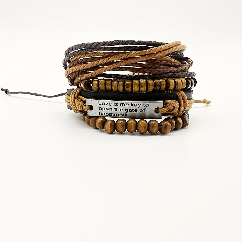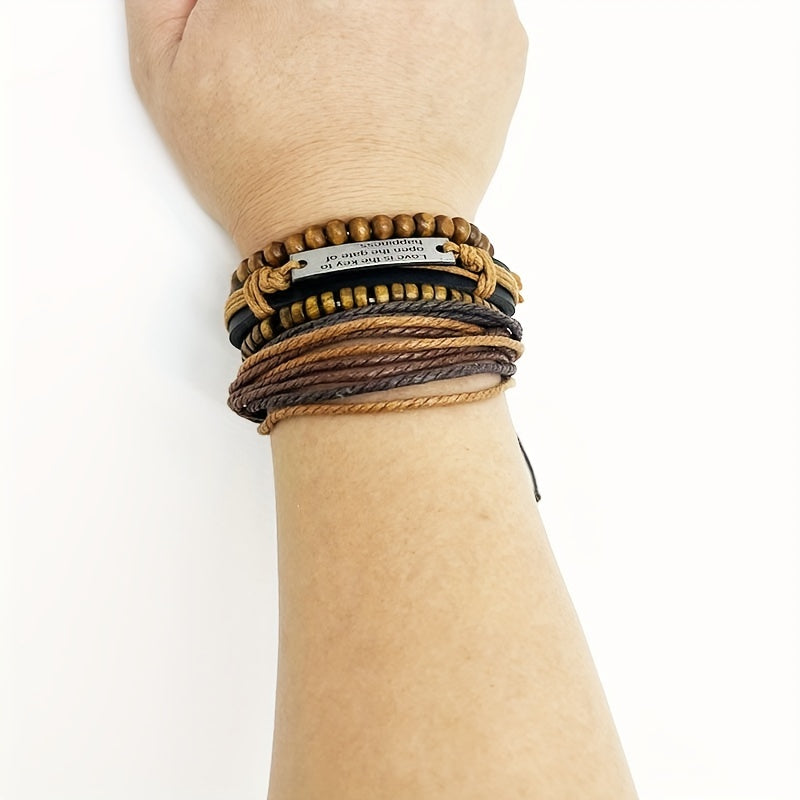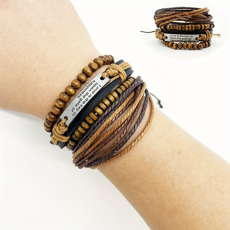 Trendy multilayer braided rope bracelets made of high-quality PU leather, perfect for everyday wear and ideal as a birthday gift for men.