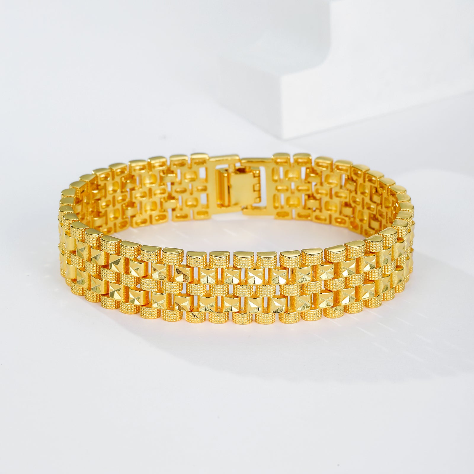 Add a touch of style to your outfit with this men's 18k real plated copper bracelet. The sleek design and durable material make it a perfect accessory for everyday wear.