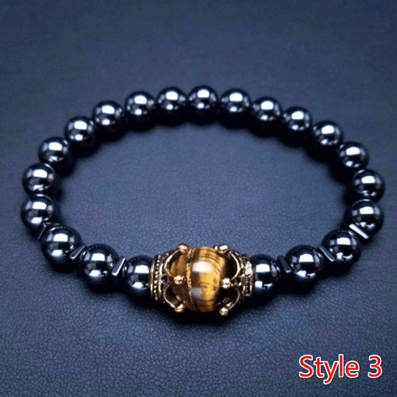 Men's Antique Crown Tiger Eye Stone Bead Bracelet
