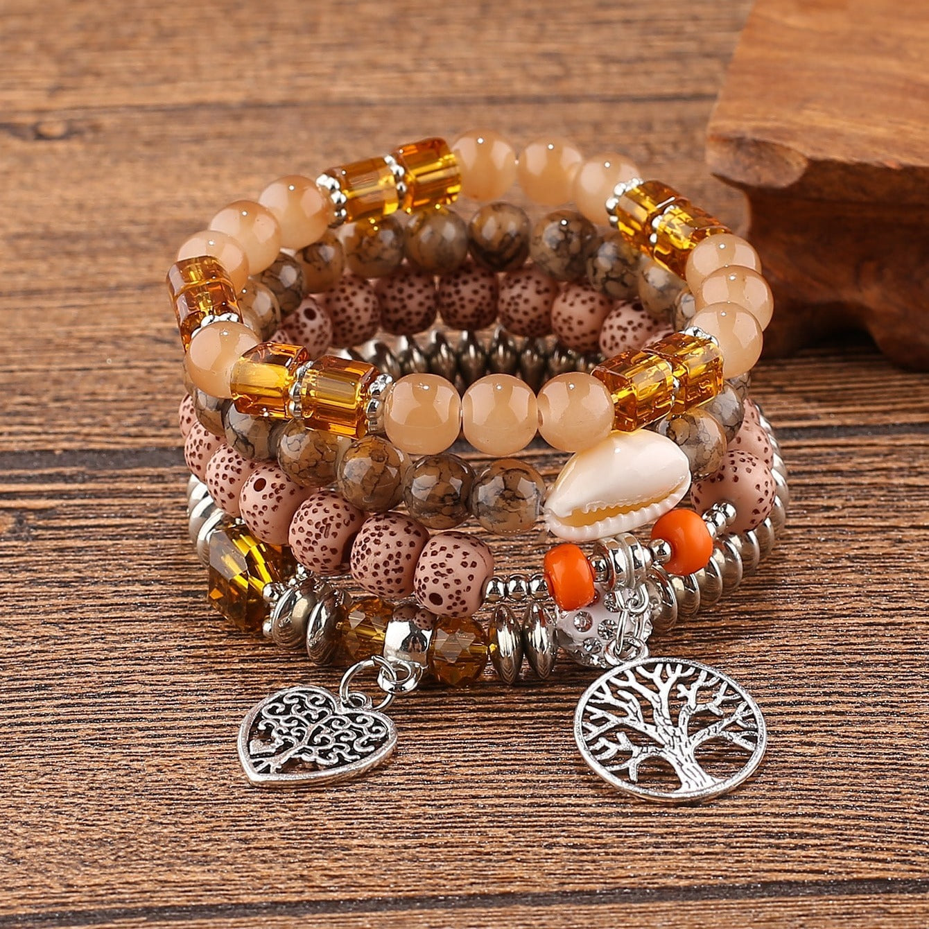 Add a touch of Bohemian style with this creative multilayer bracelet featuring heart and life tree shapes. Perfect accessory for parties.