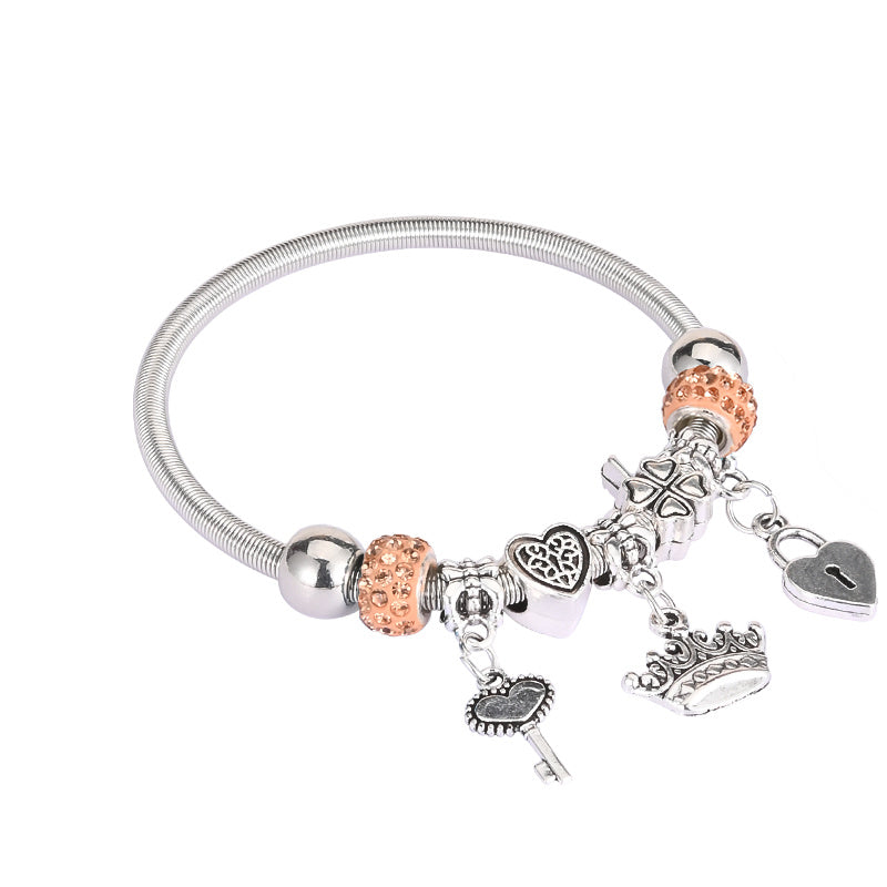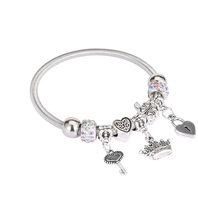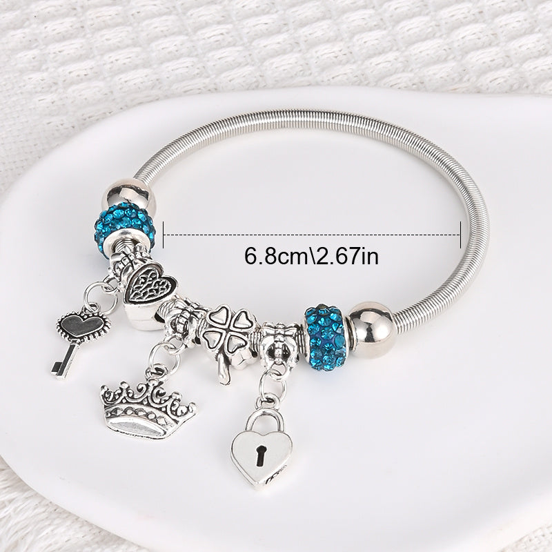 This fashionable bracelet features a zircon key lock crown pendant, making it a perfect gift for both men and women.