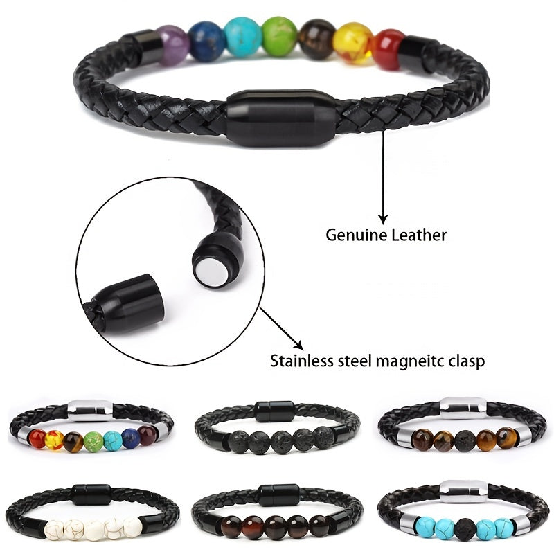 Men's Colorful Punk Beaded Bracelet with Magnetic Clasp