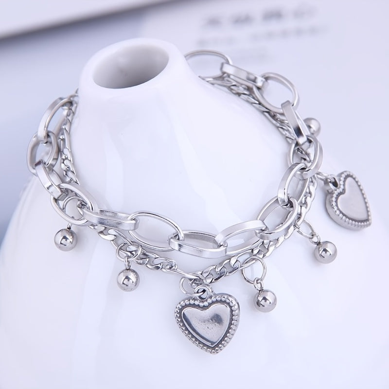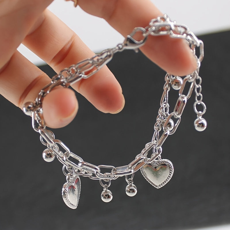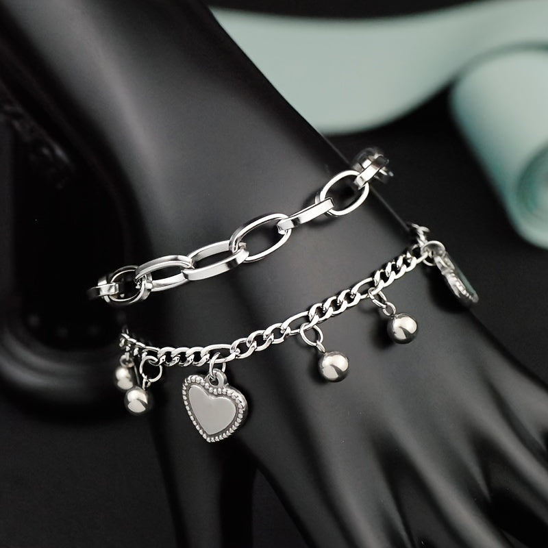 Enhance your style with this trendy bracelet featuring a double layer design and a stylish heart pendant.