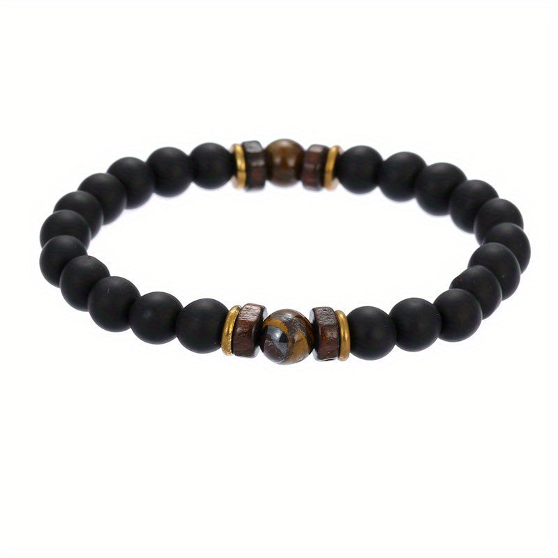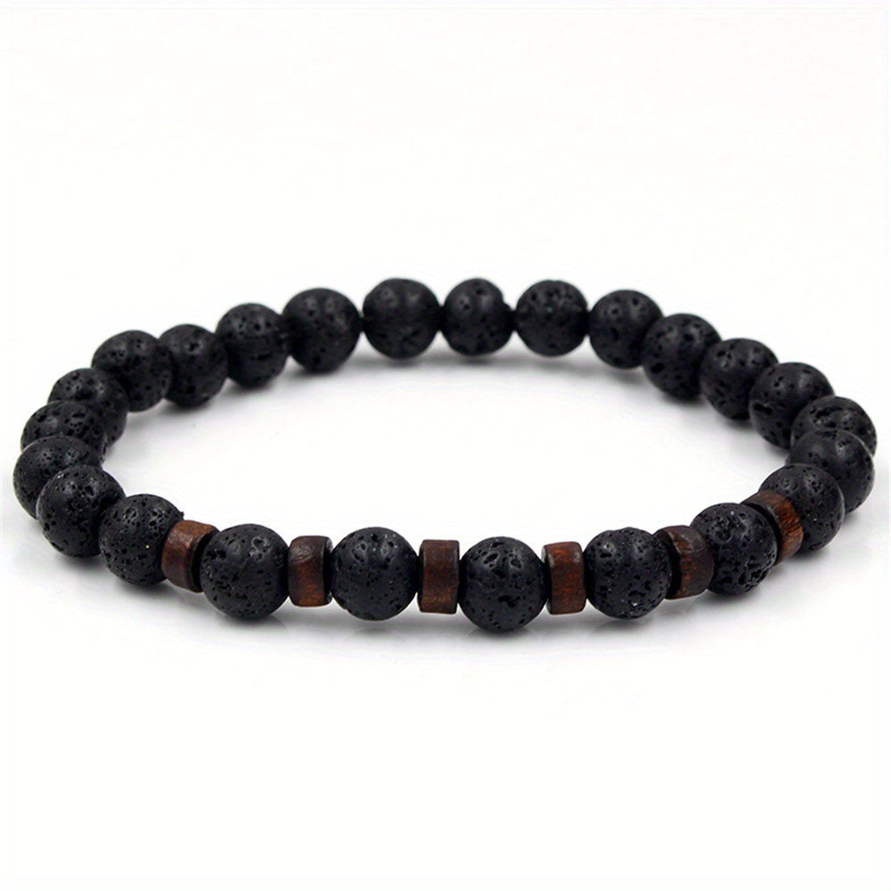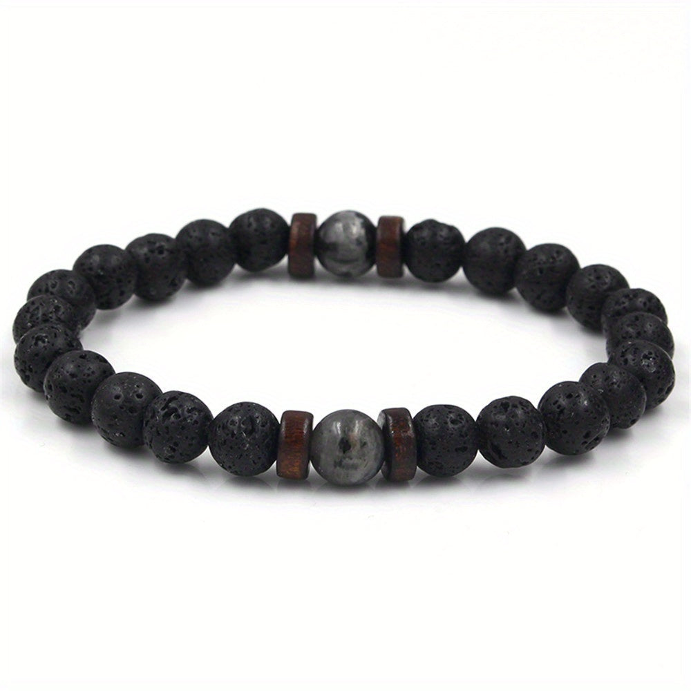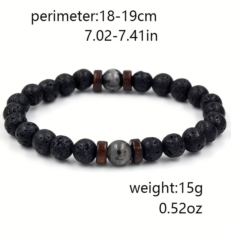Enhance your style with this classic bracelet featuring glitter, volcanic stone, and iron stone. Perfect for adding a touch of personality to your outfit.