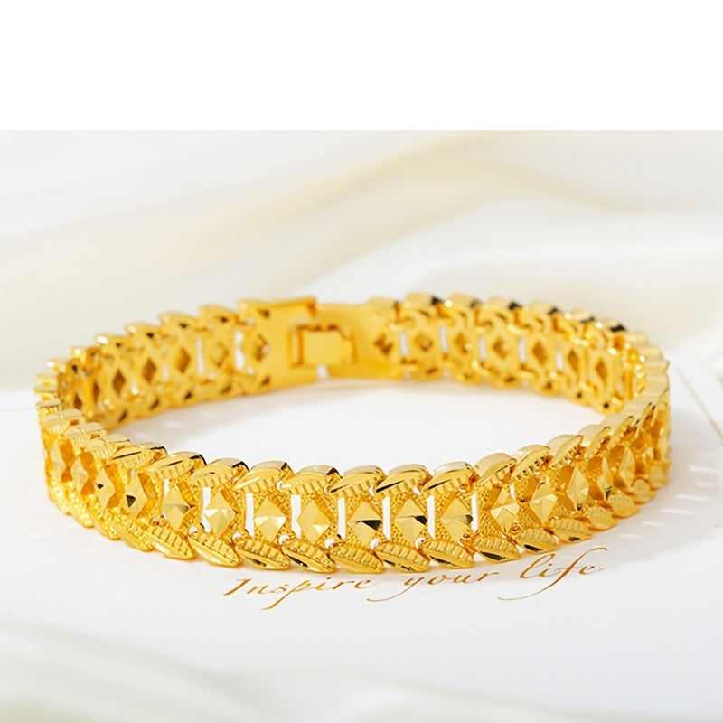 This stylish men's bracelet features a golden plated design, making it a perfect gift for any occasion.