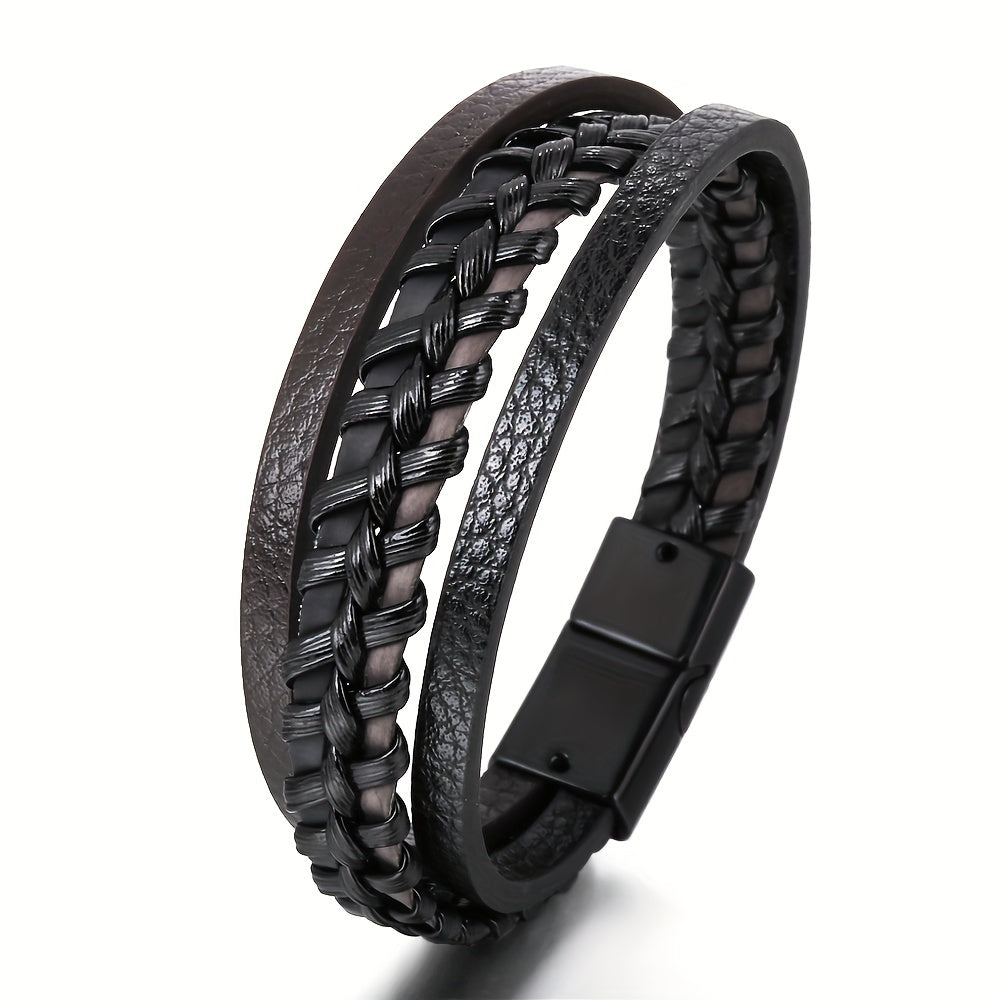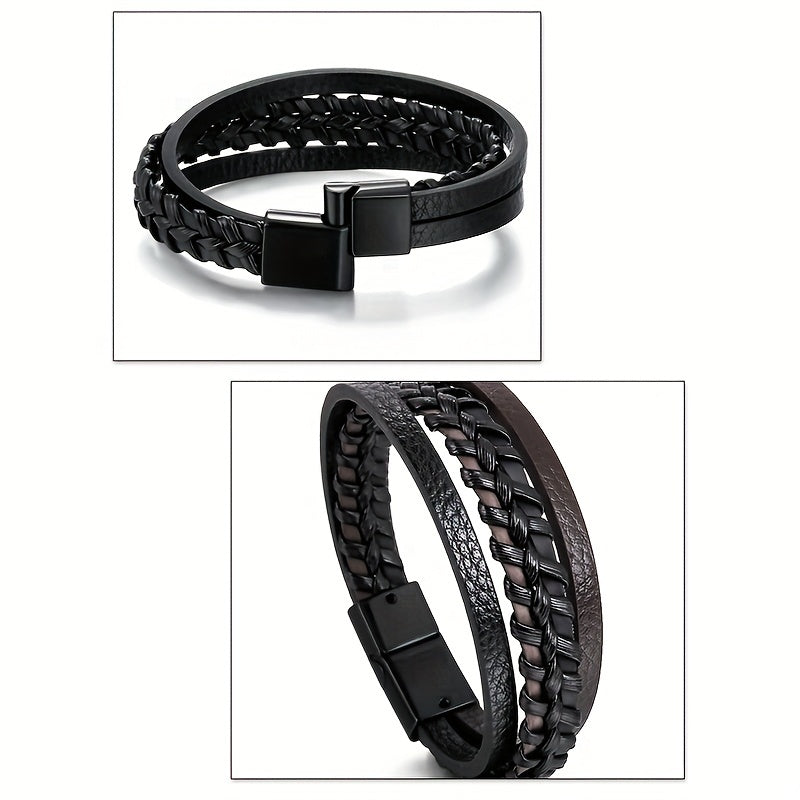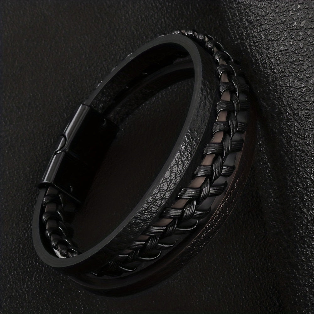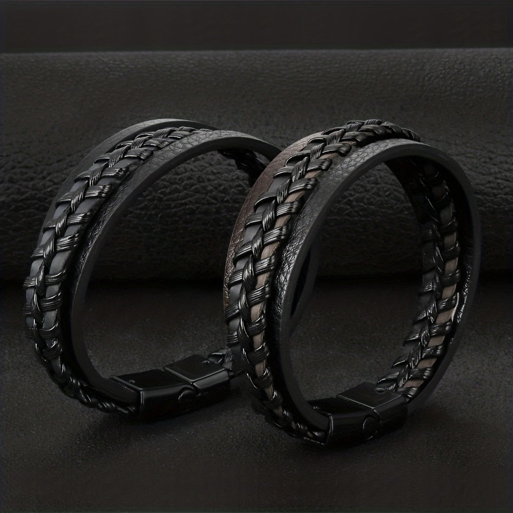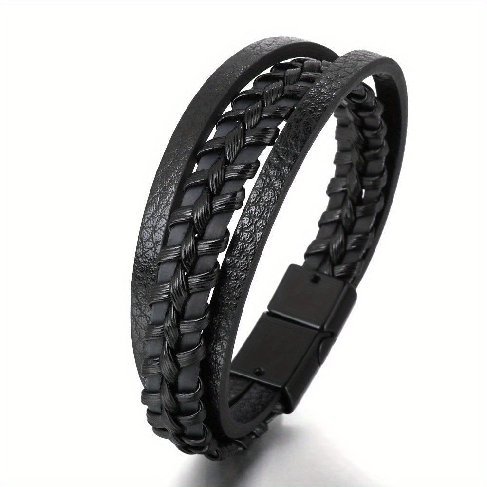 This stylish bracelet is crafted from high-quality PU leather and alloy, making it a perfect gift for men on weddings or special occasions.