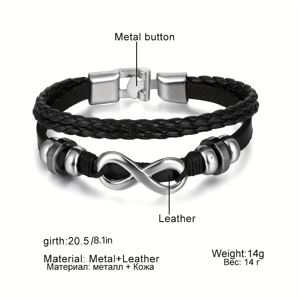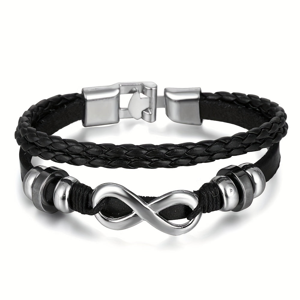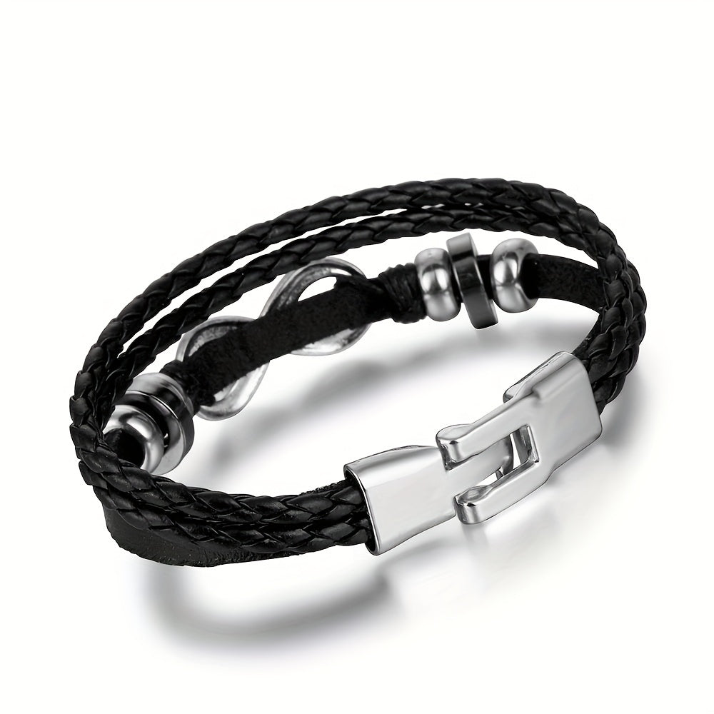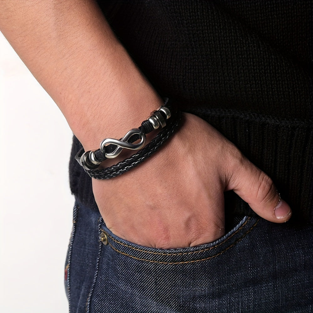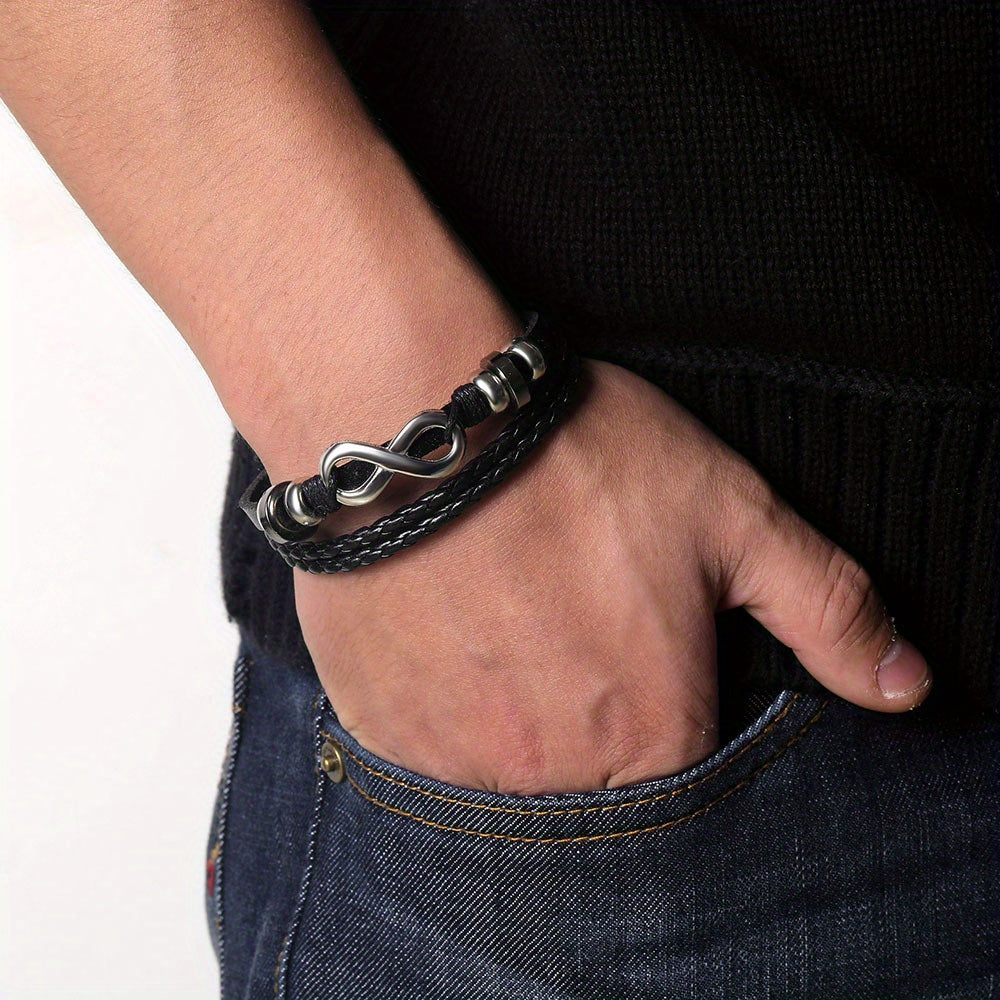 Add a touch of style to your outfit with this fashionable men's leather bracelet featuring multiple layers for a trendy look.