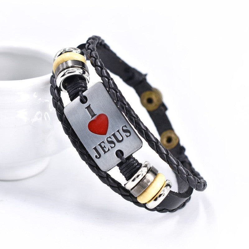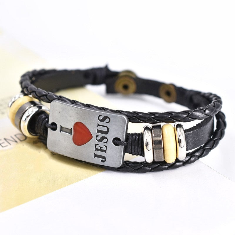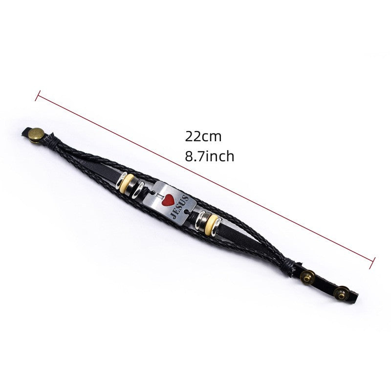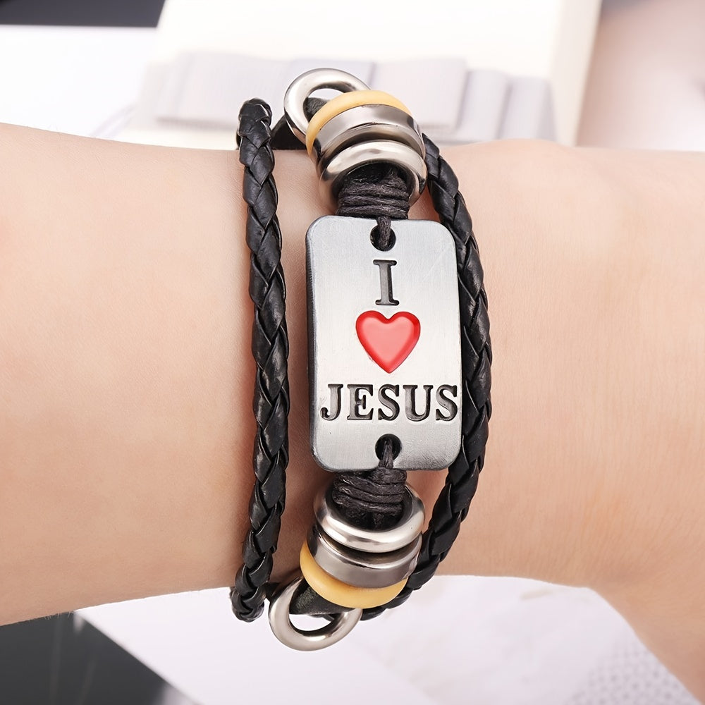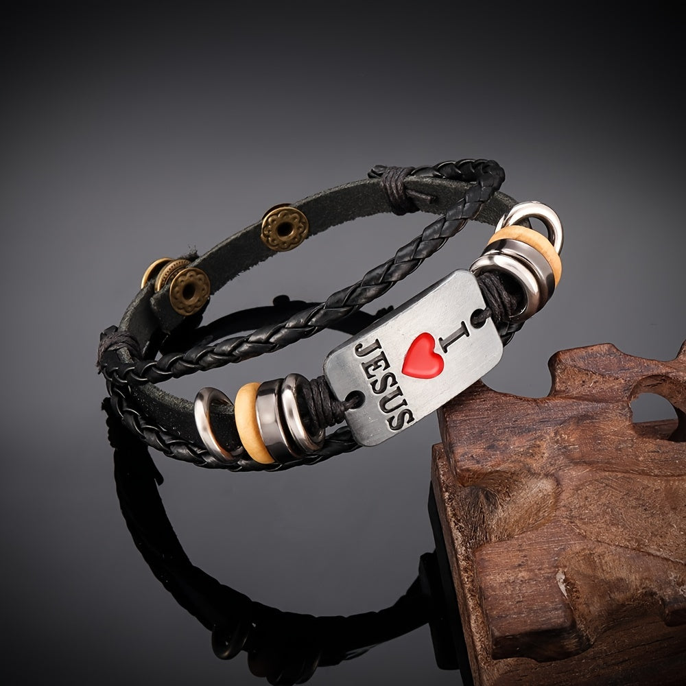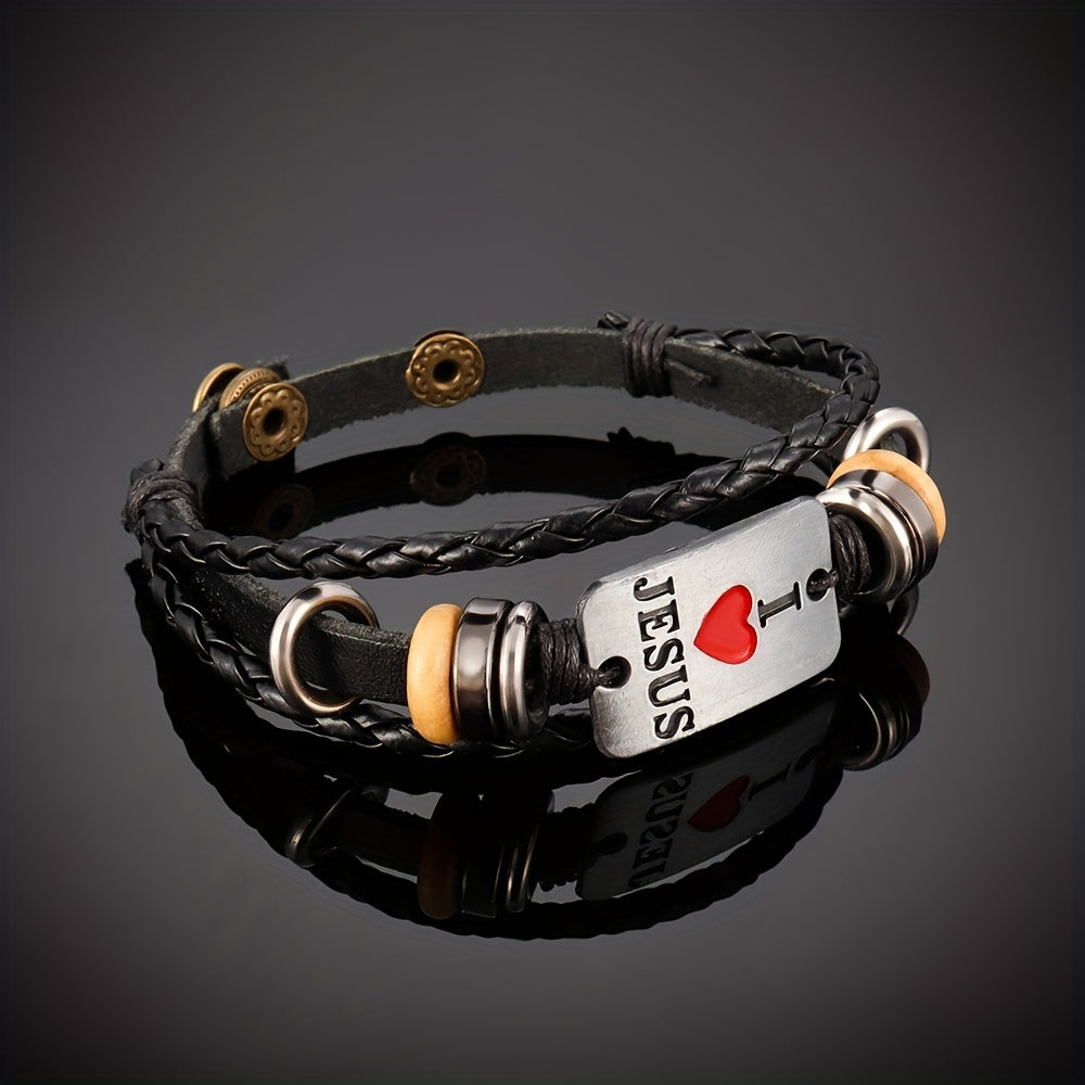 This punk-style bracelet features a fashionable design with letter beads and multilayer leather braids. Ideal for adding a trendy touch to your outfit.