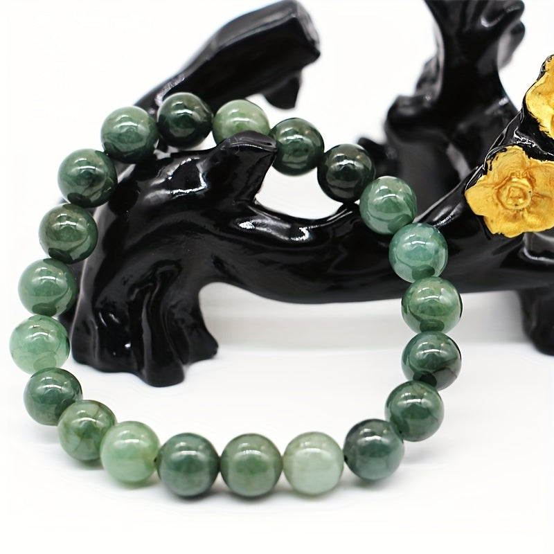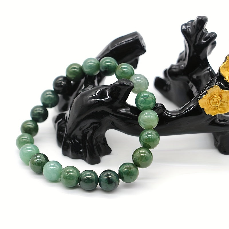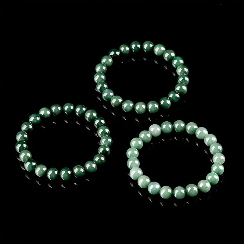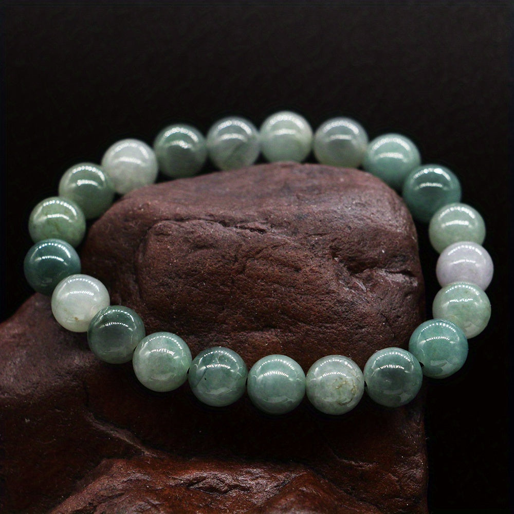 Men's Natural Jadeite Beads Bracelet 9mm 0.35inch Oil Sapphire Bead 21pcs