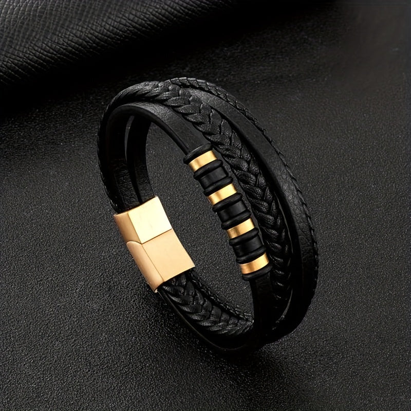 Add a touch of edgy style to your look with this braided leather bracelet. Perfect for casual or party wear.