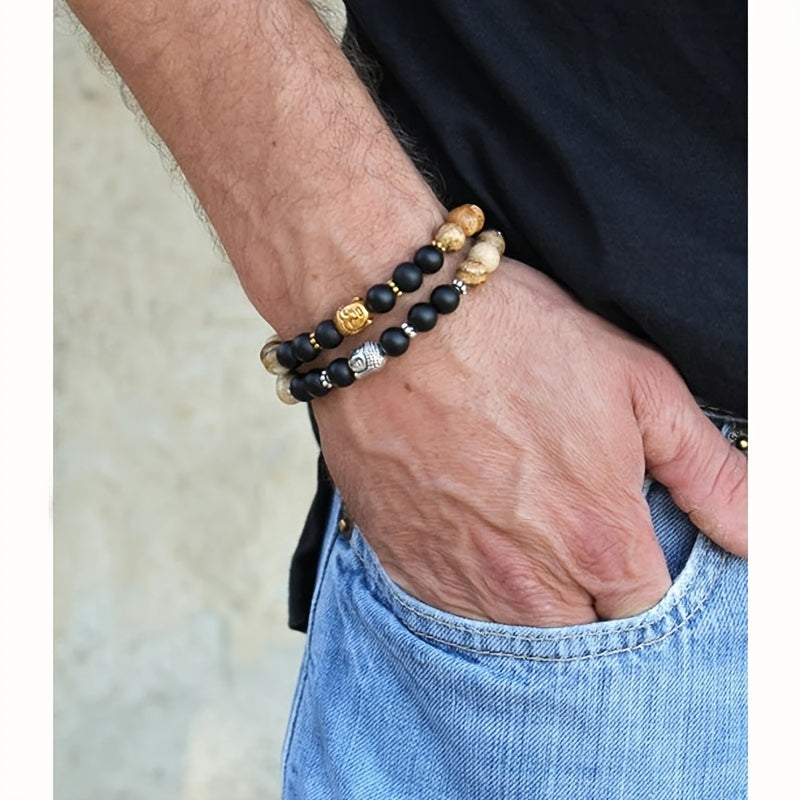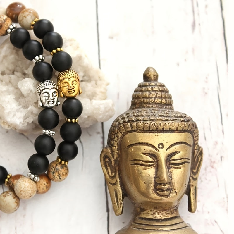 This Buddha Guardian bracelet features a retro design with a Buddha head charm. It is perfect for couples looking to share a spiritual connection.