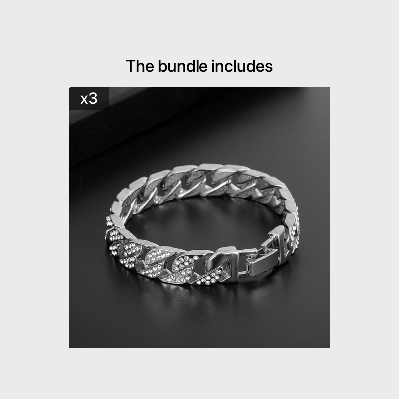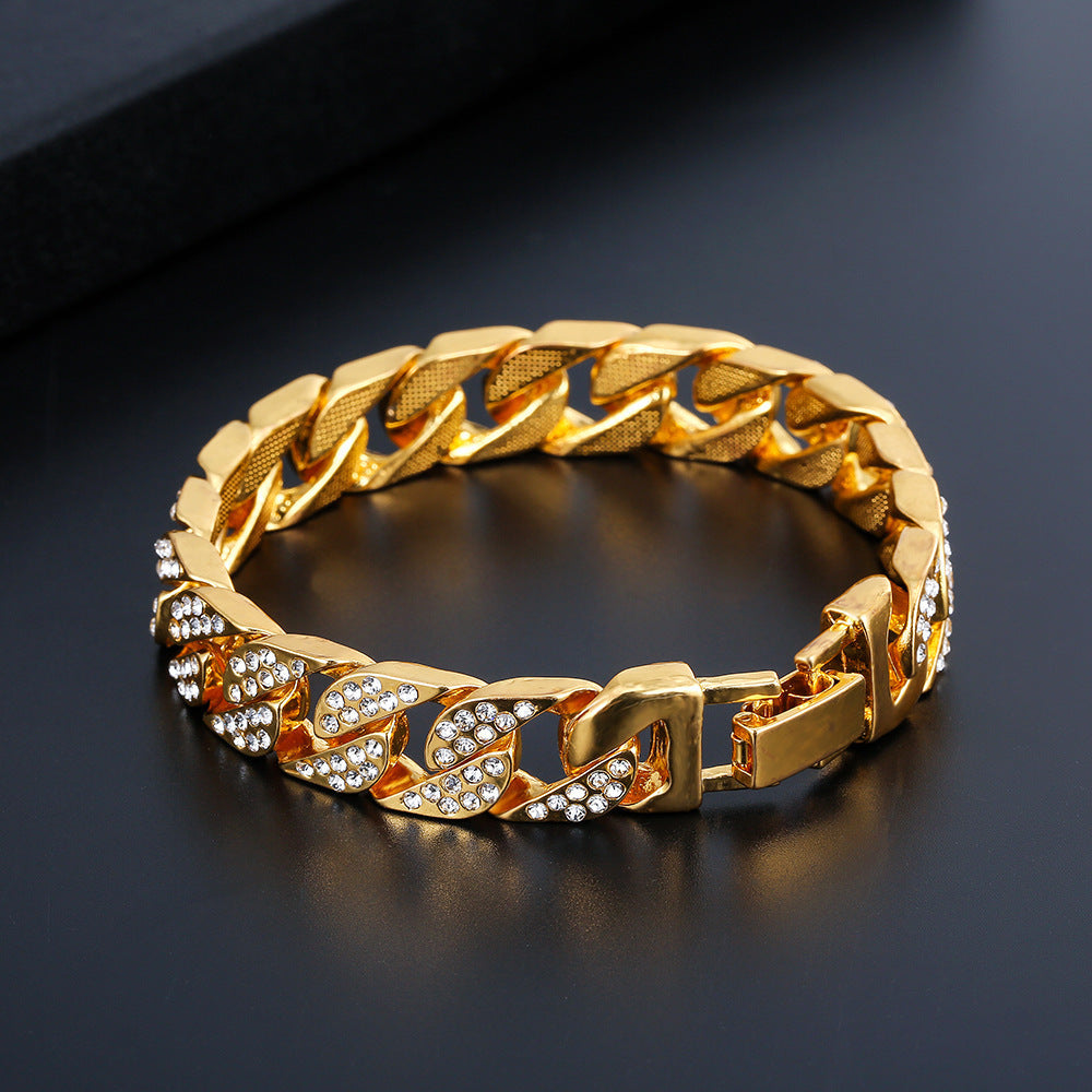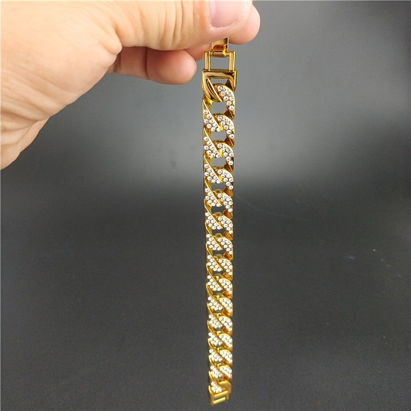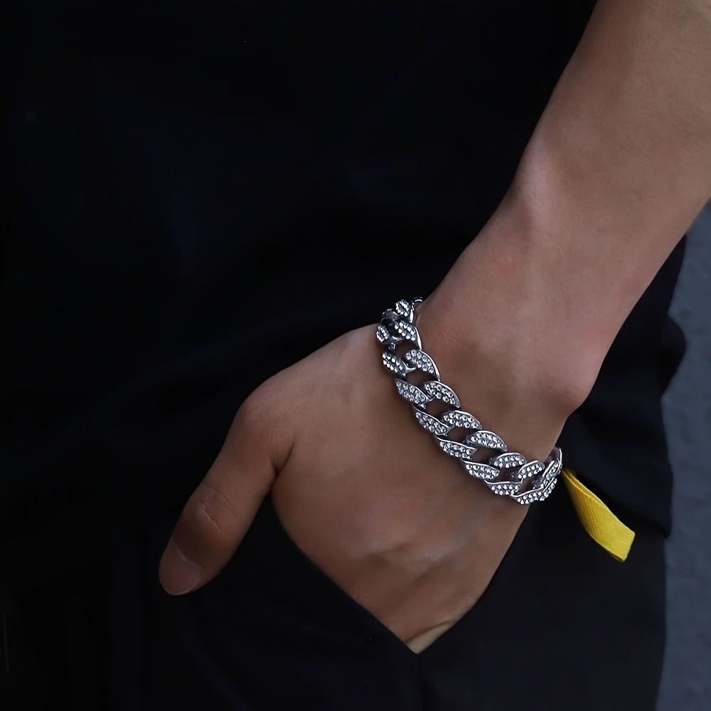 Add a touch of bling to your style with this dazzling full rhinestone Cuban link chain bracelet for men.