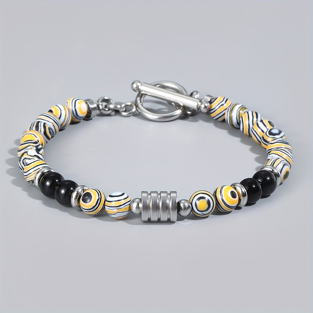 Add a touch of style to your look with this stainless steel beaded bracelet designed for men.