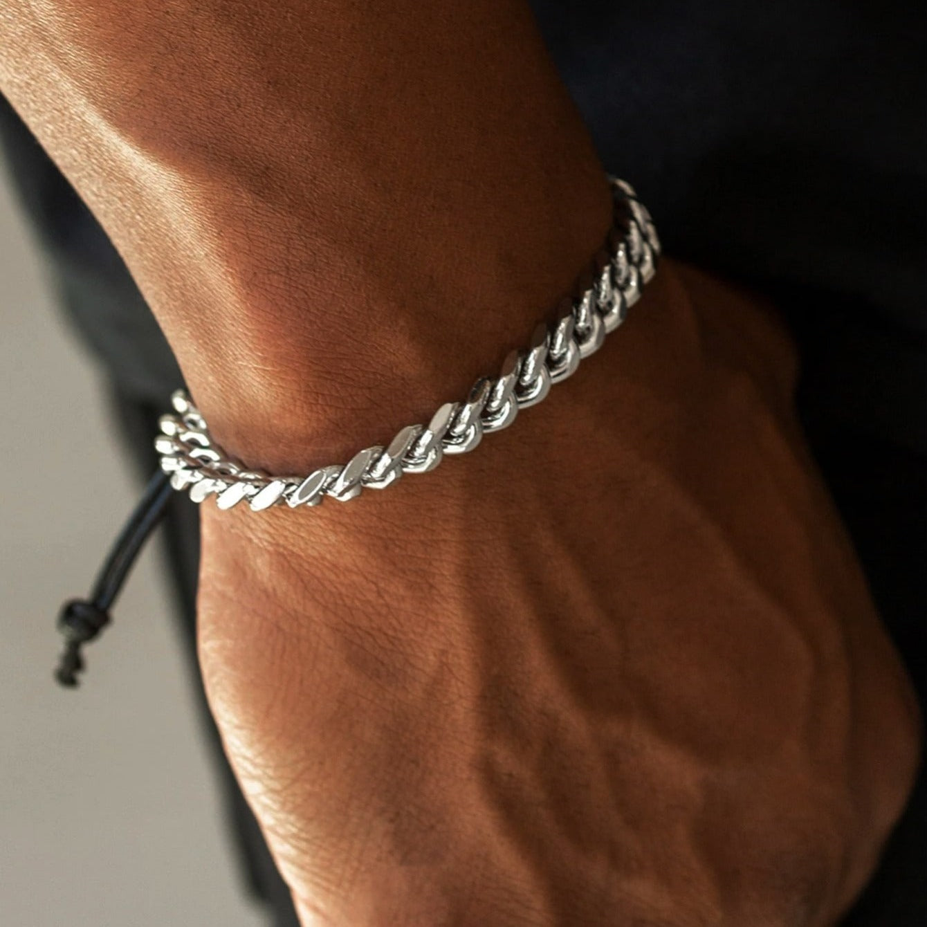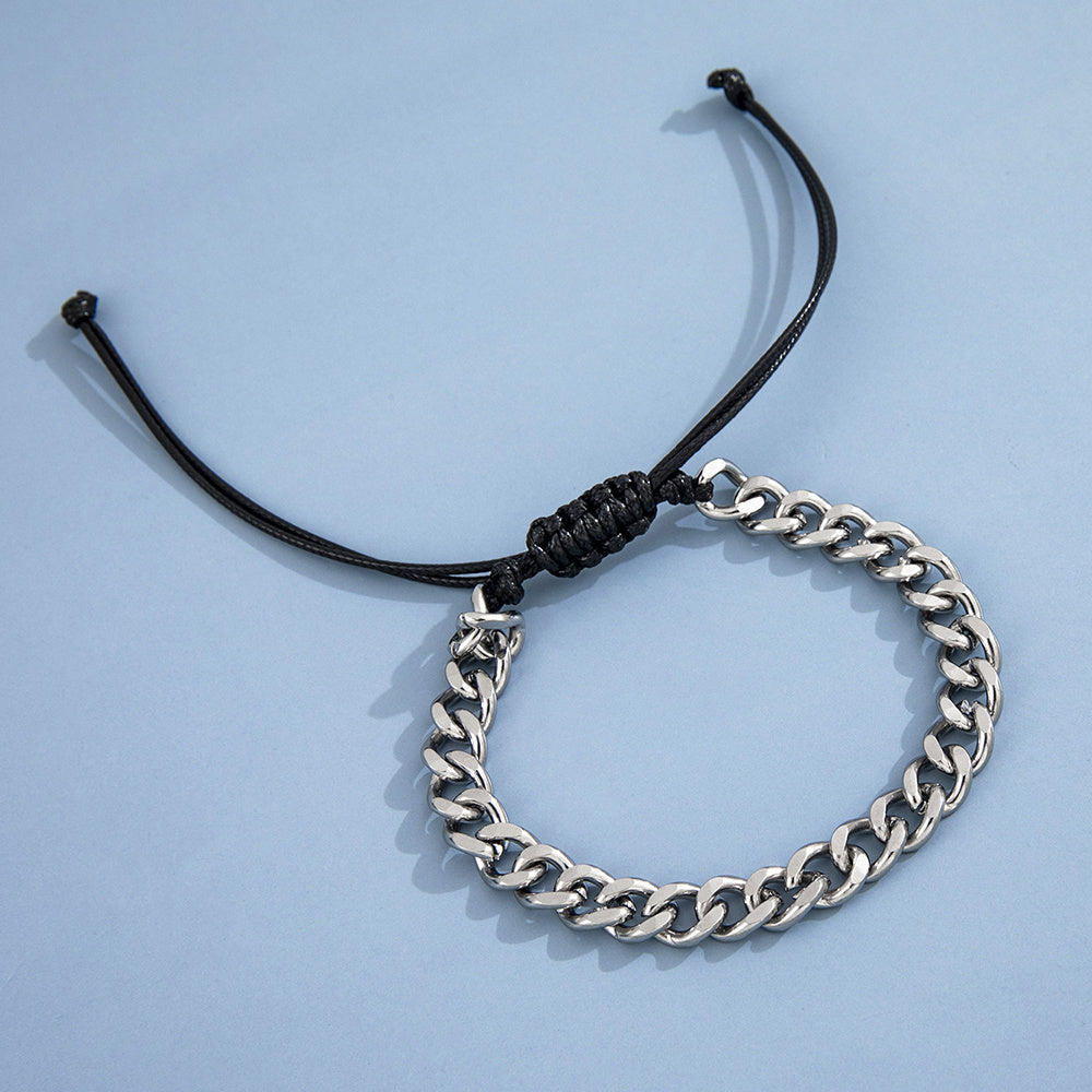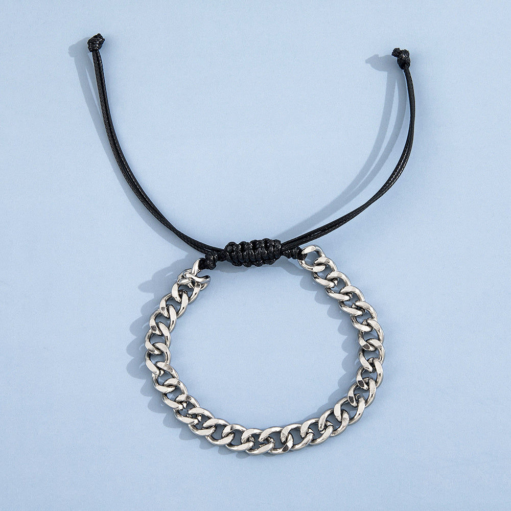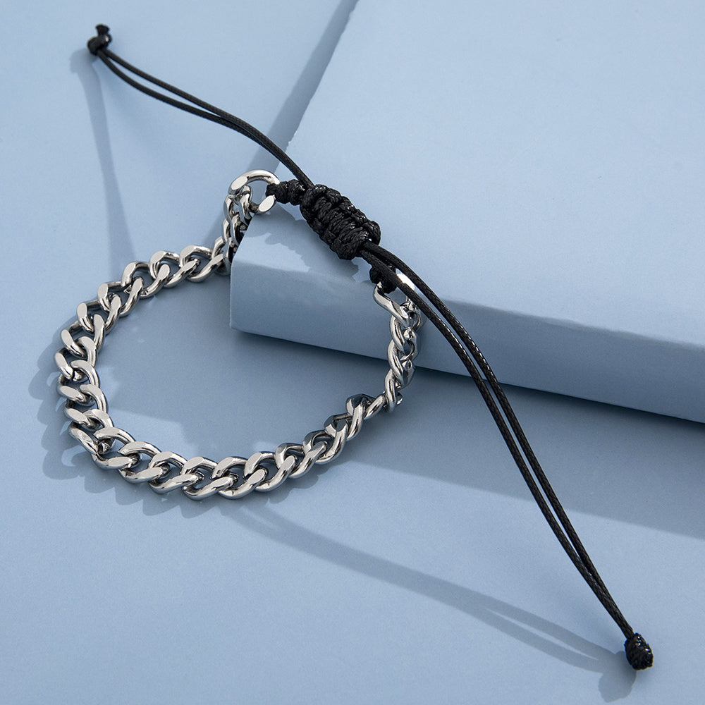 Add a touch of style to your outfits with this braided bracelet featuring a sturdy stainless steel construction.