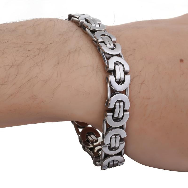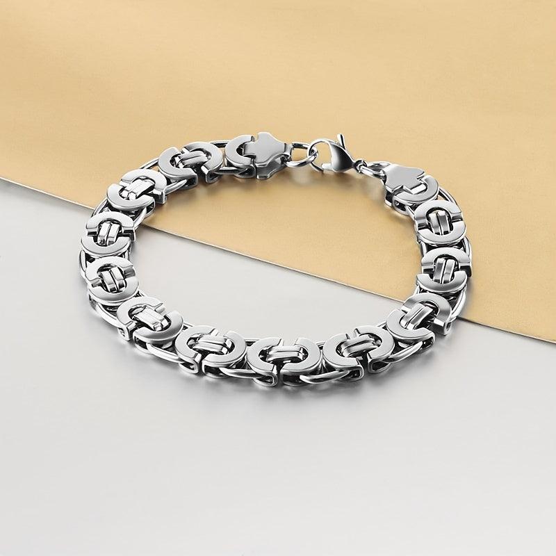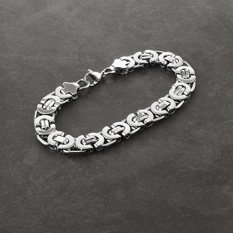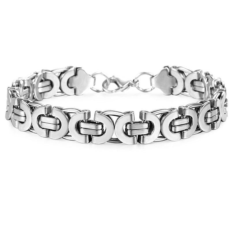 Enhance your style with this flat rock Byzantine bracelet. Made of stainless steel, it's a perfect addition to any outfit.
