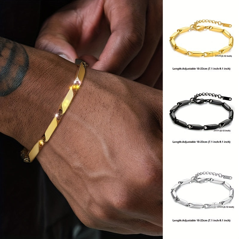 This men's bracelet is made of titanium steel with a quenched bamboo leaf chain design. It is perfect for adding a touch of style to any outfit.