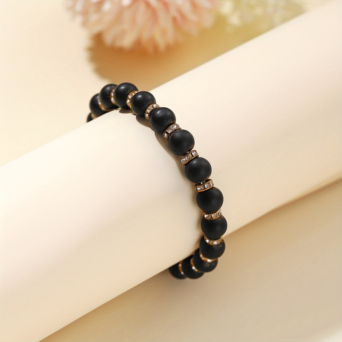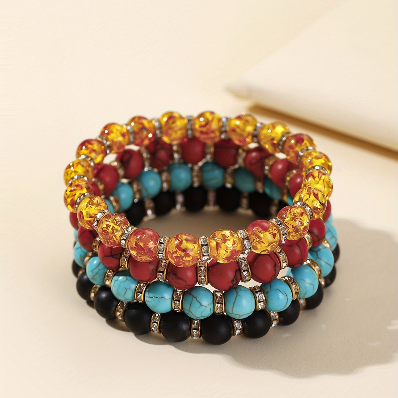 Elegant men's bracelet with multicolored volcanic stone beads. Made from durable acrylic materials. Perfect for casual or formal wear.