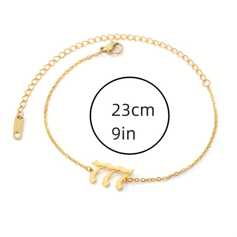 This adjustable anklet features a minimalist design with lucky angel number chain. Perfect for adding a touch of charm to your beach look or as a birthday gift.