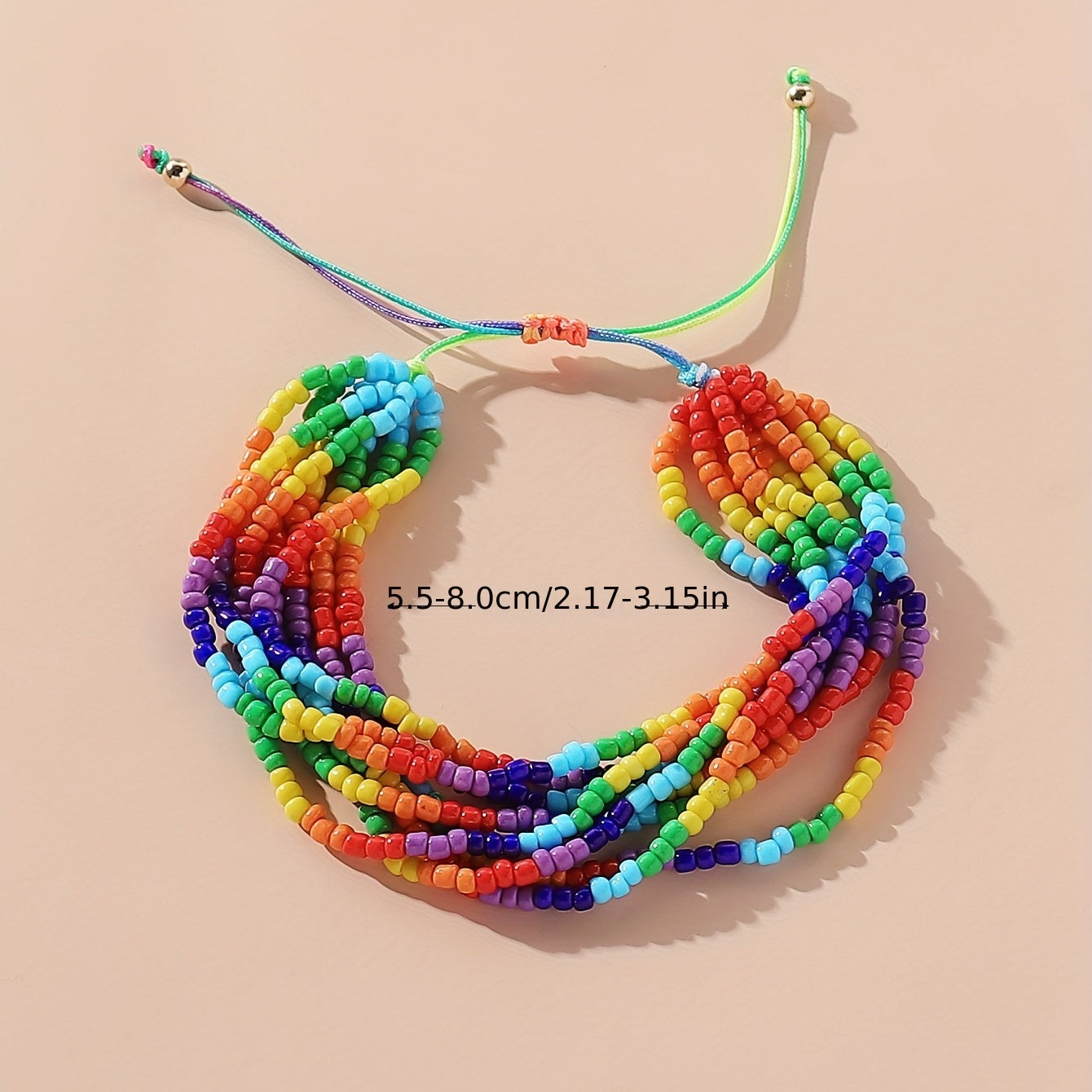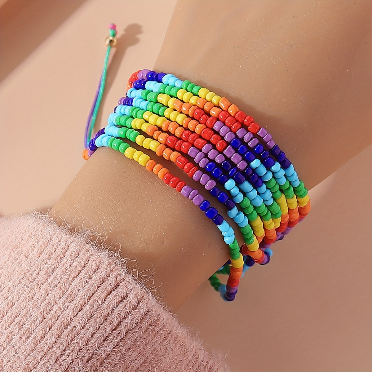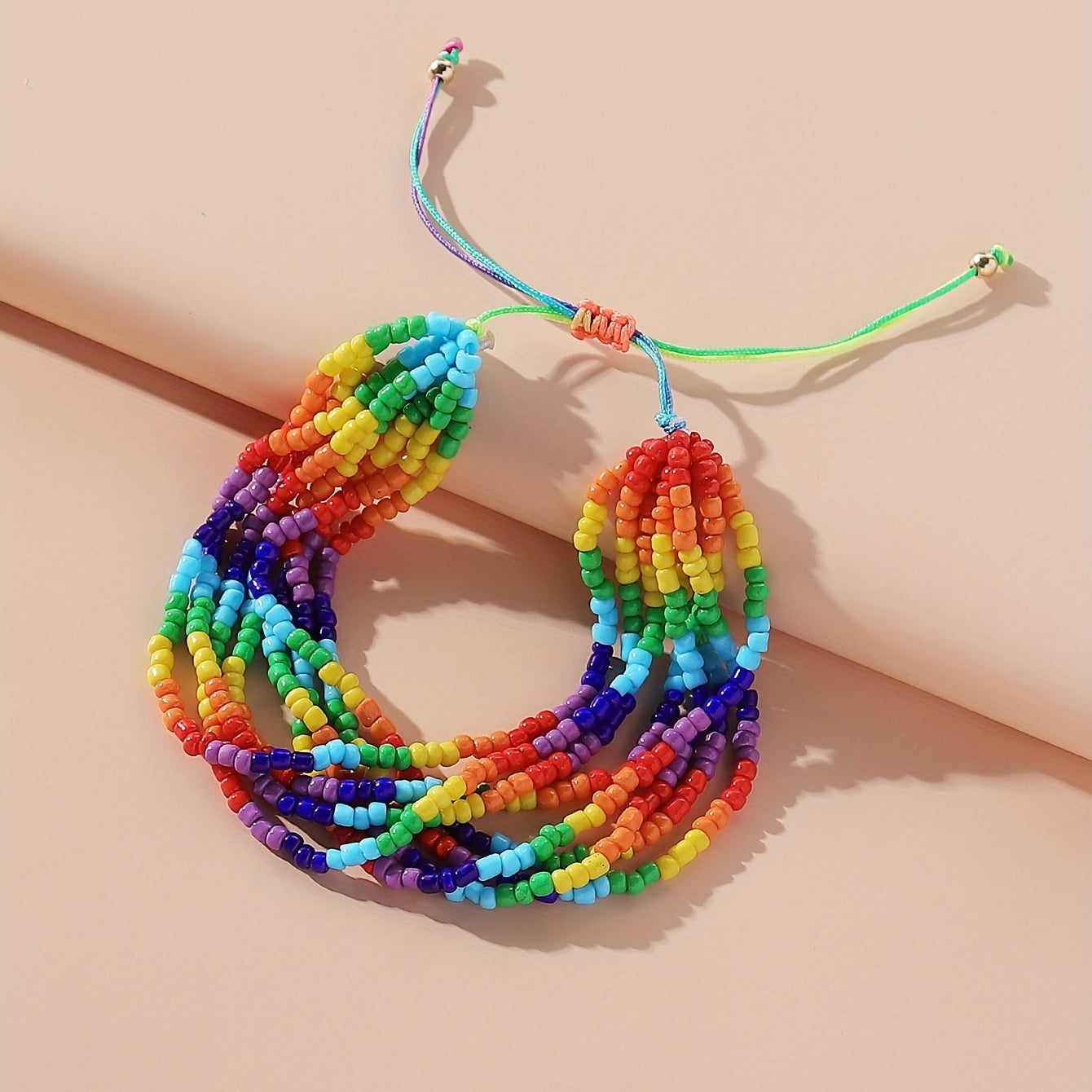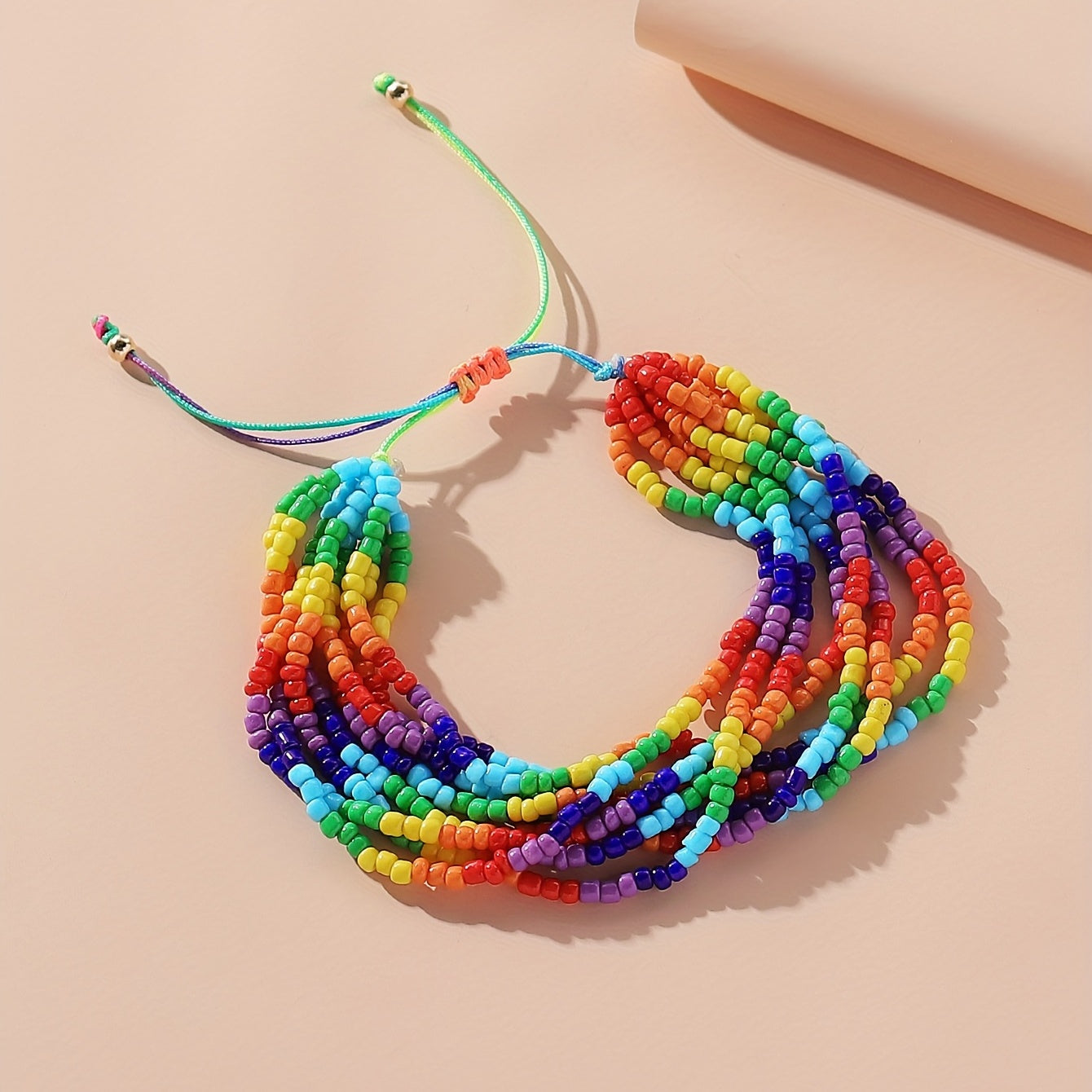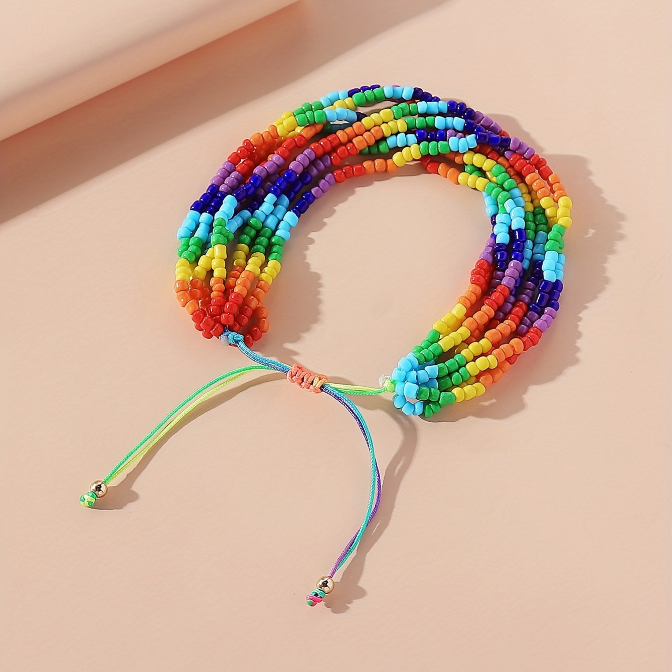 Celebrate Pride Month with this multilayer rainbow beaded bracelet featuring a bohemian beach style design.