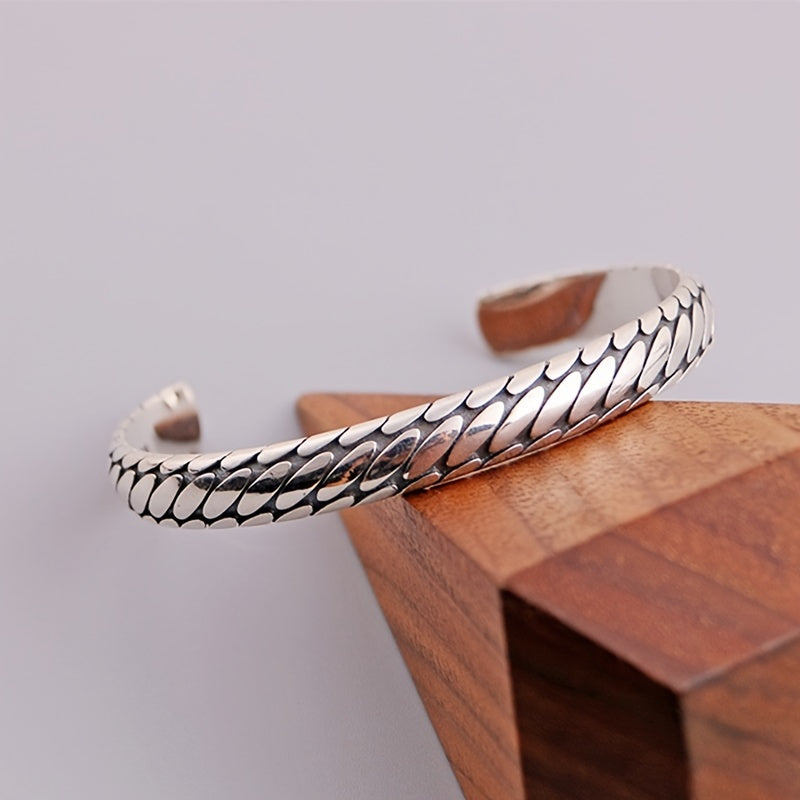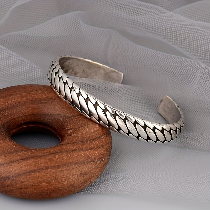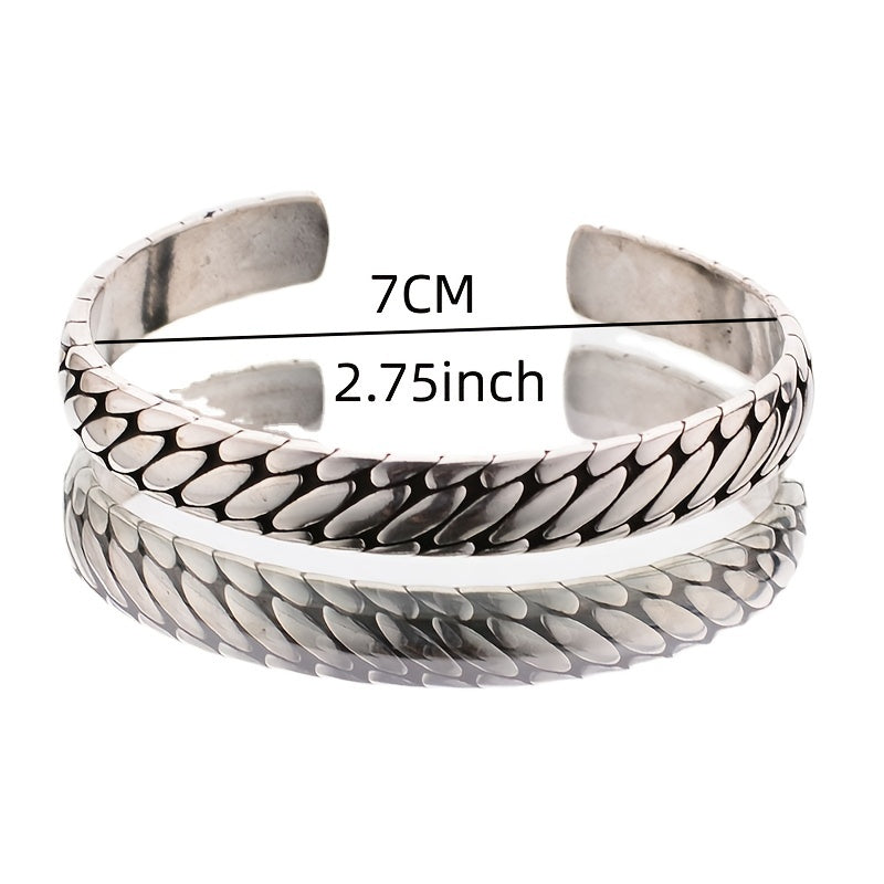 Add a touch of street style with this retro hip hop bracelet featuring an engraved tire pattern. The pop open design allows for easy wear and adds a unique touch to your outfit.