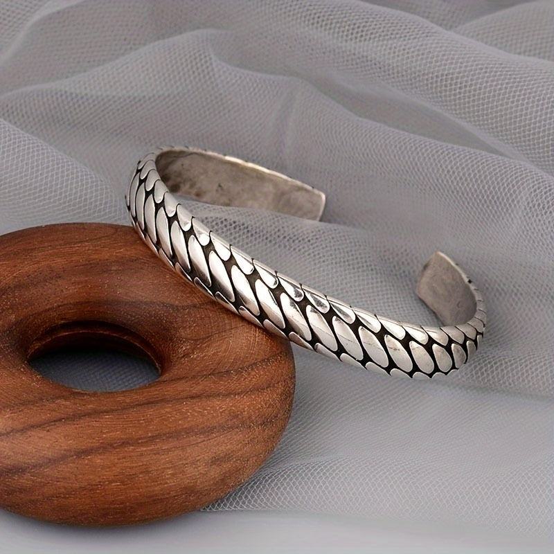 Retro Engraved Tire Pattern Bracelet, Hip Hop Style Men's Pop Open Bracelet