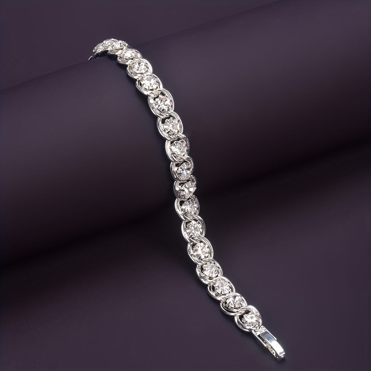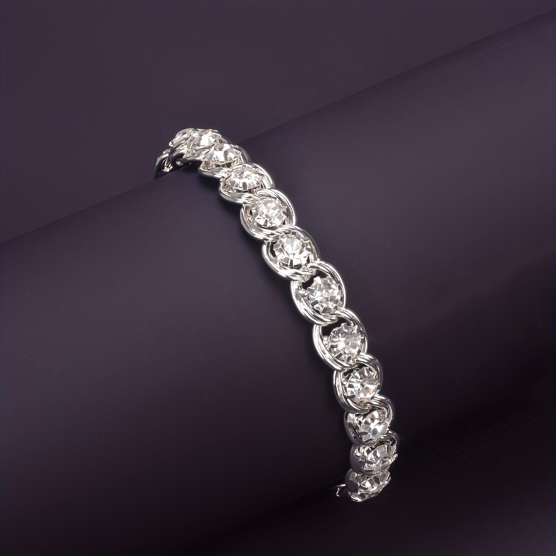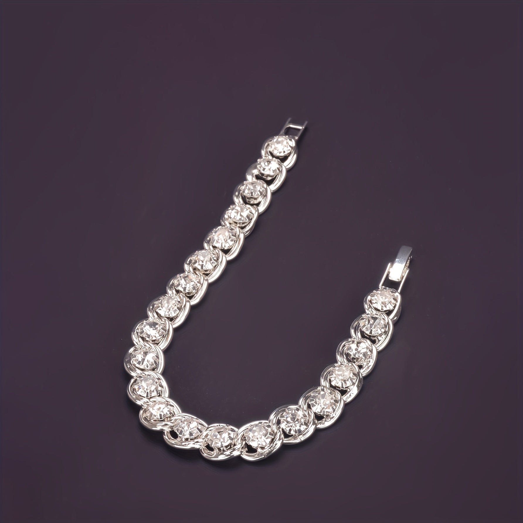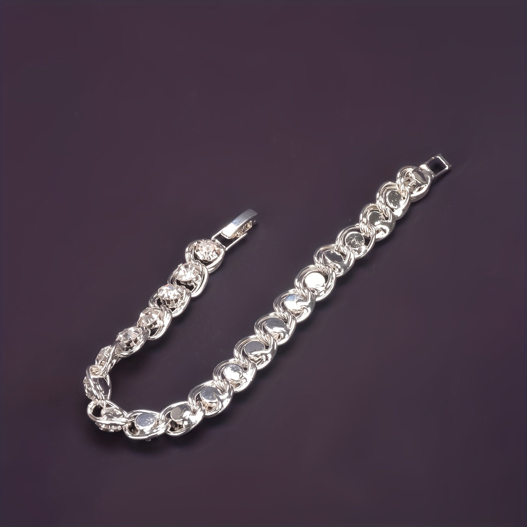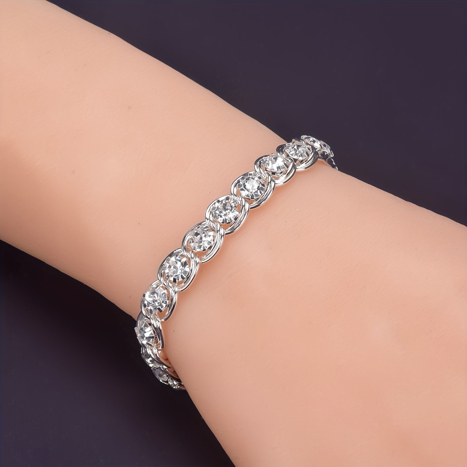 Enhance your hand jewelry collection with this stunning twist bangle bracelet adorned with inlaid rhinestones.