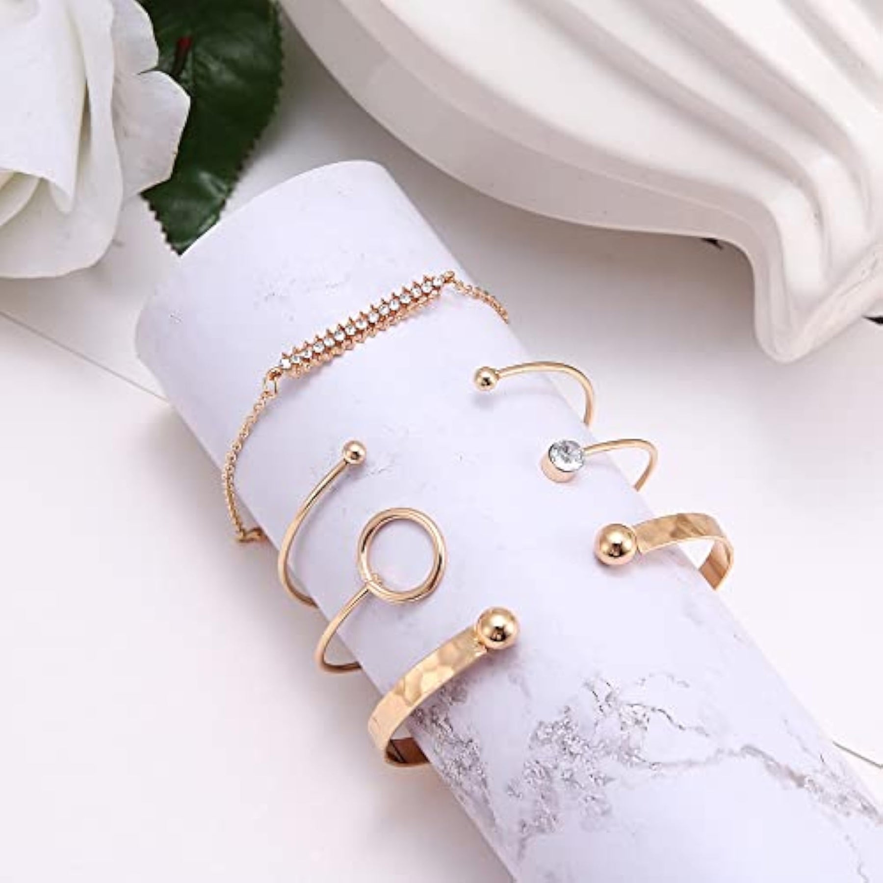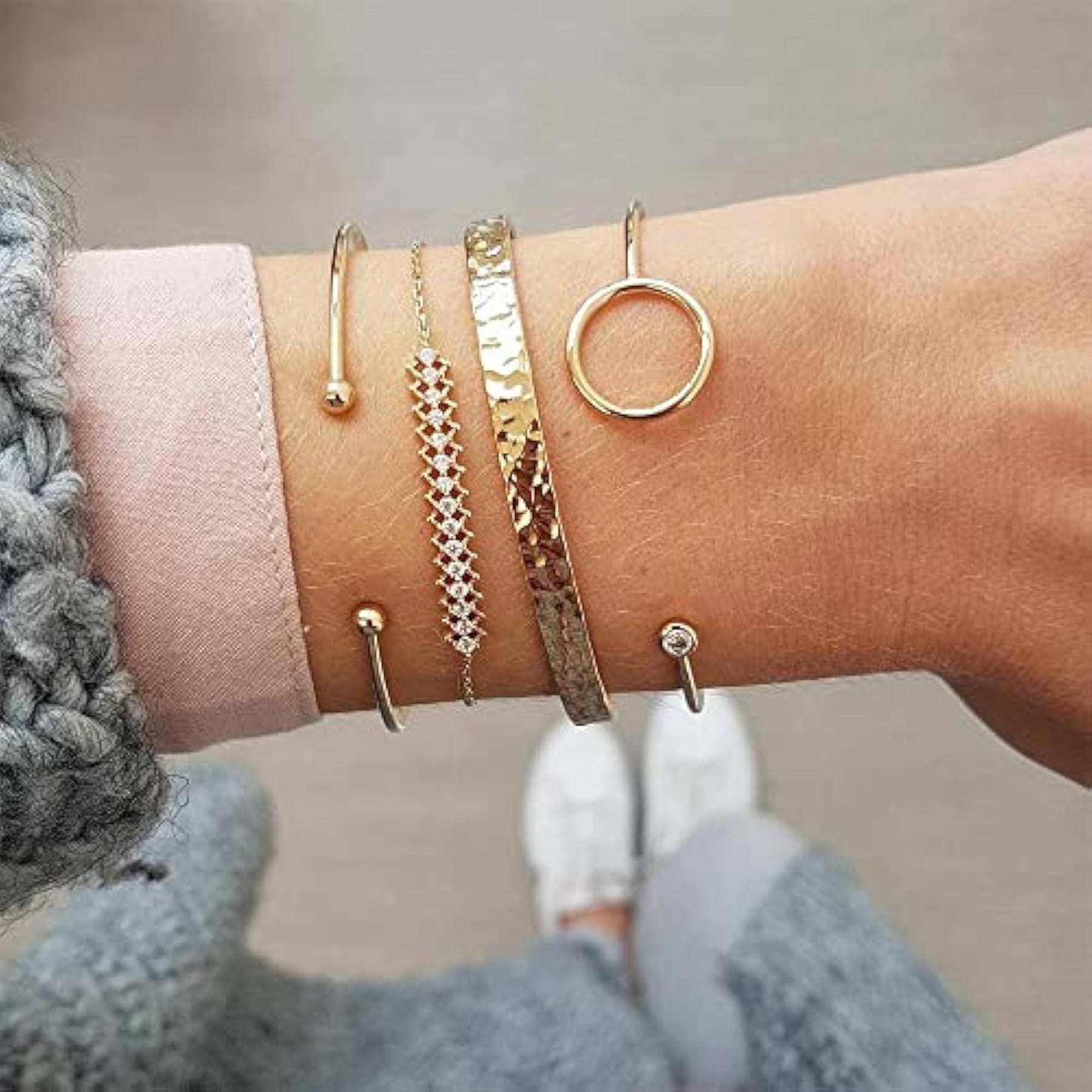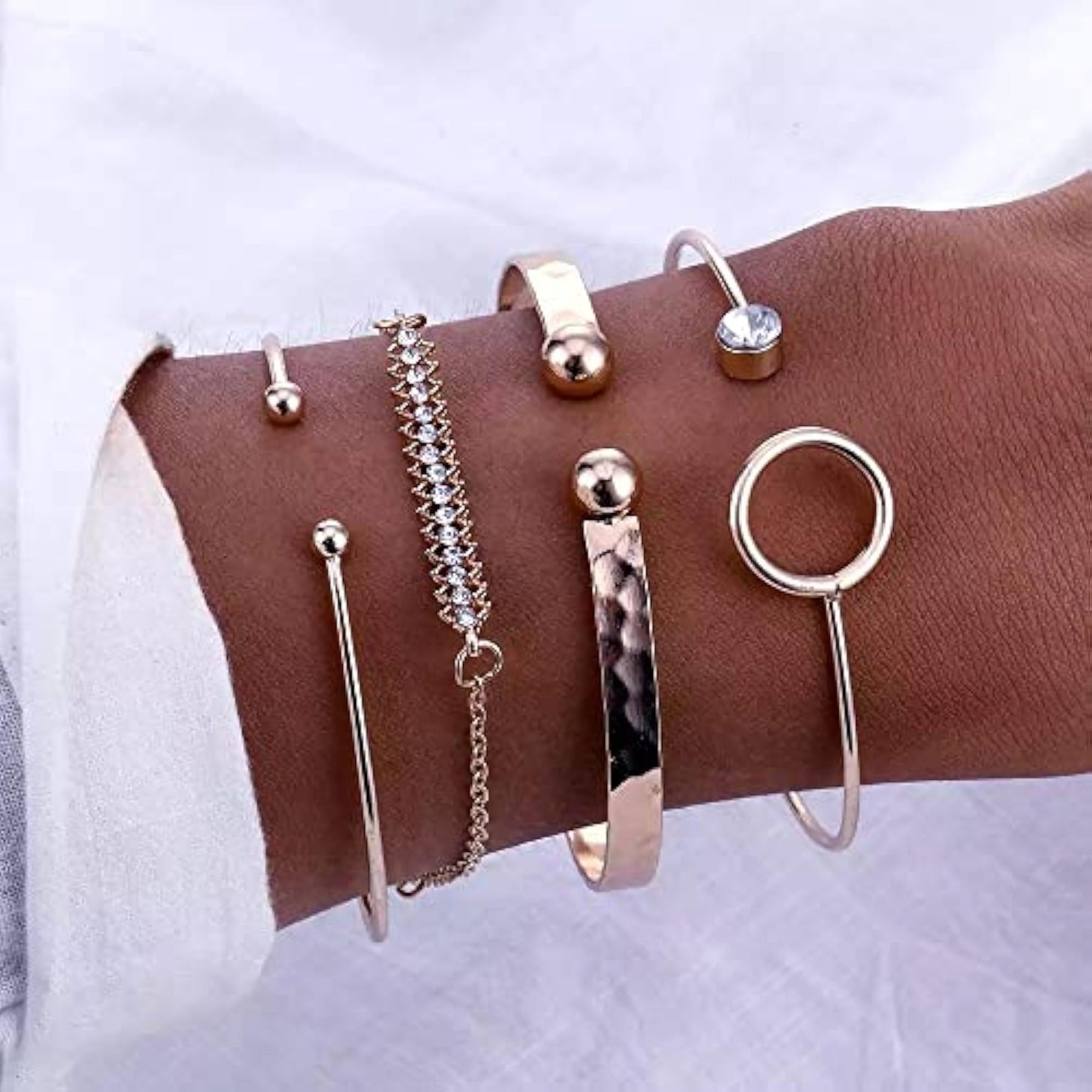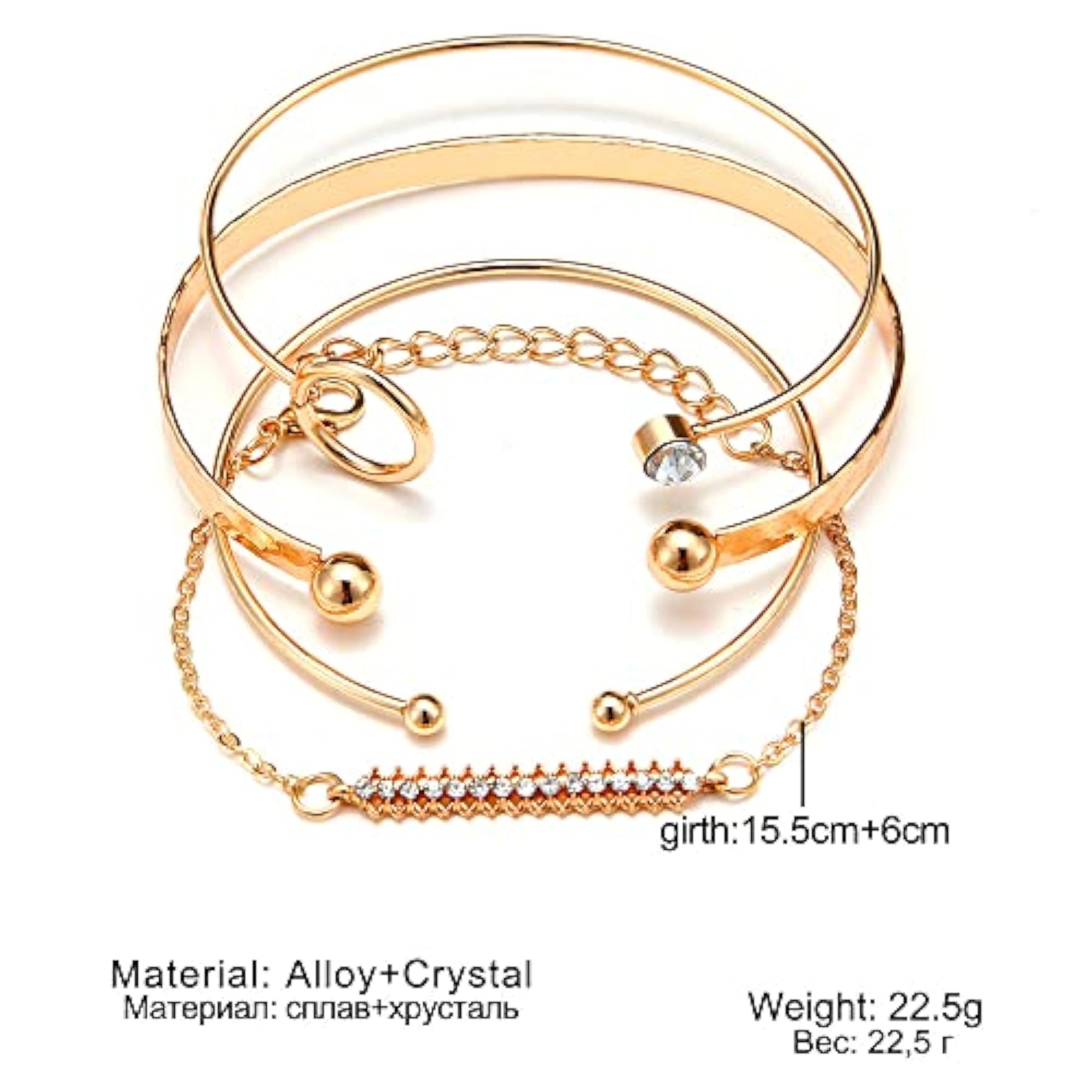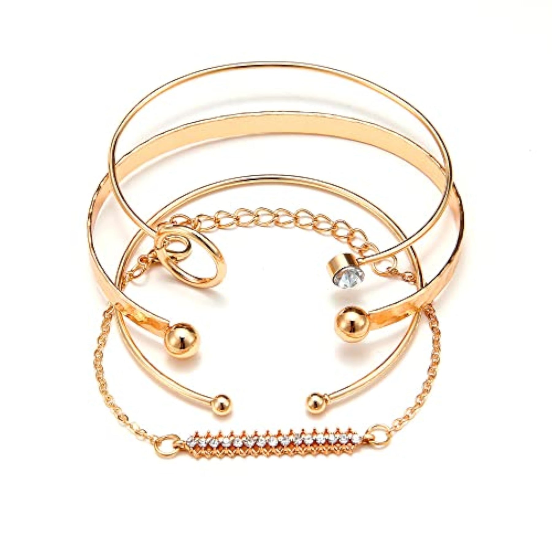 Elegant set of 4 multilayer crystal bangle bracelets plated for women.