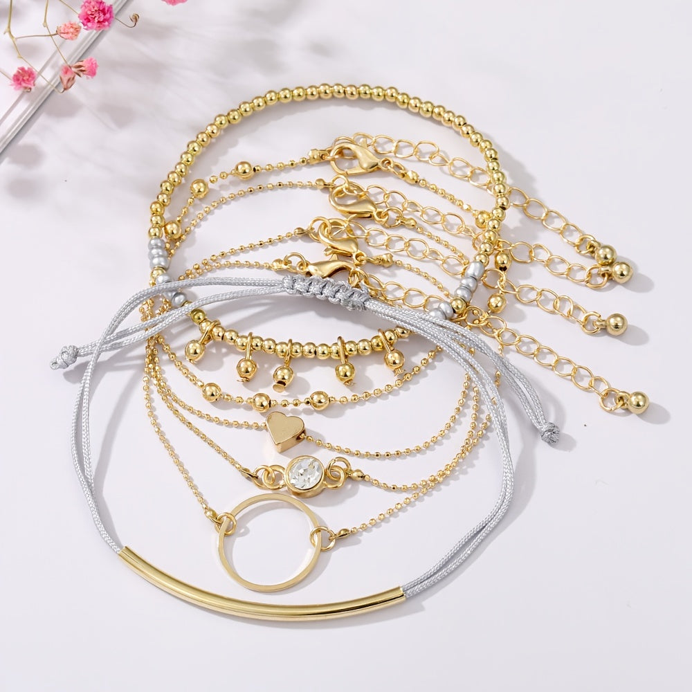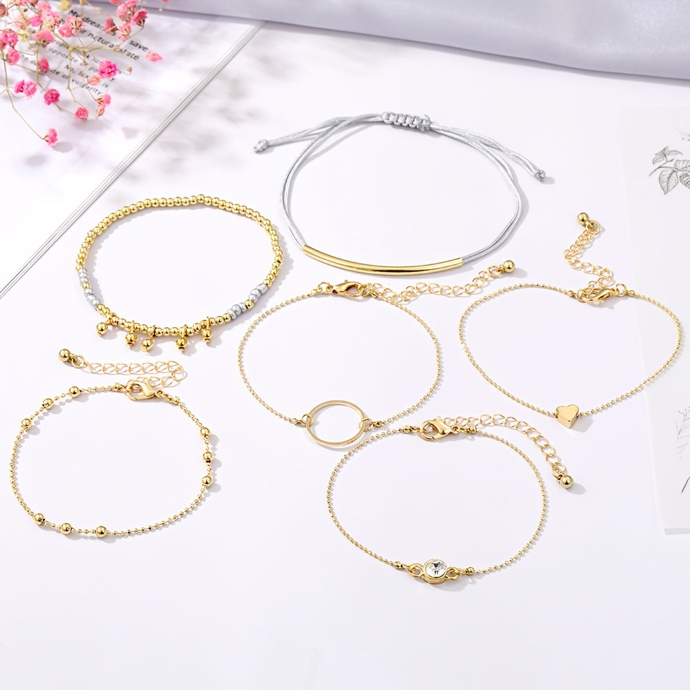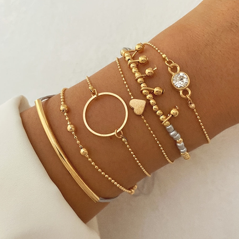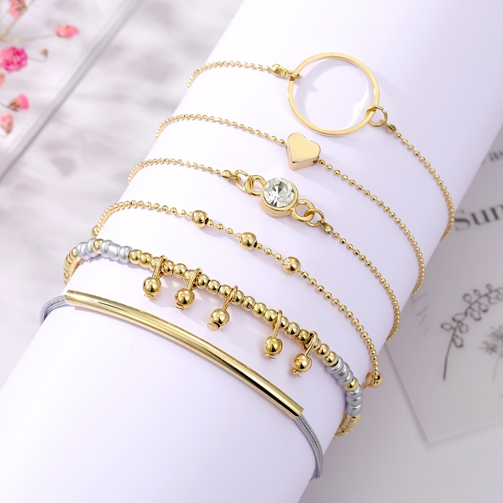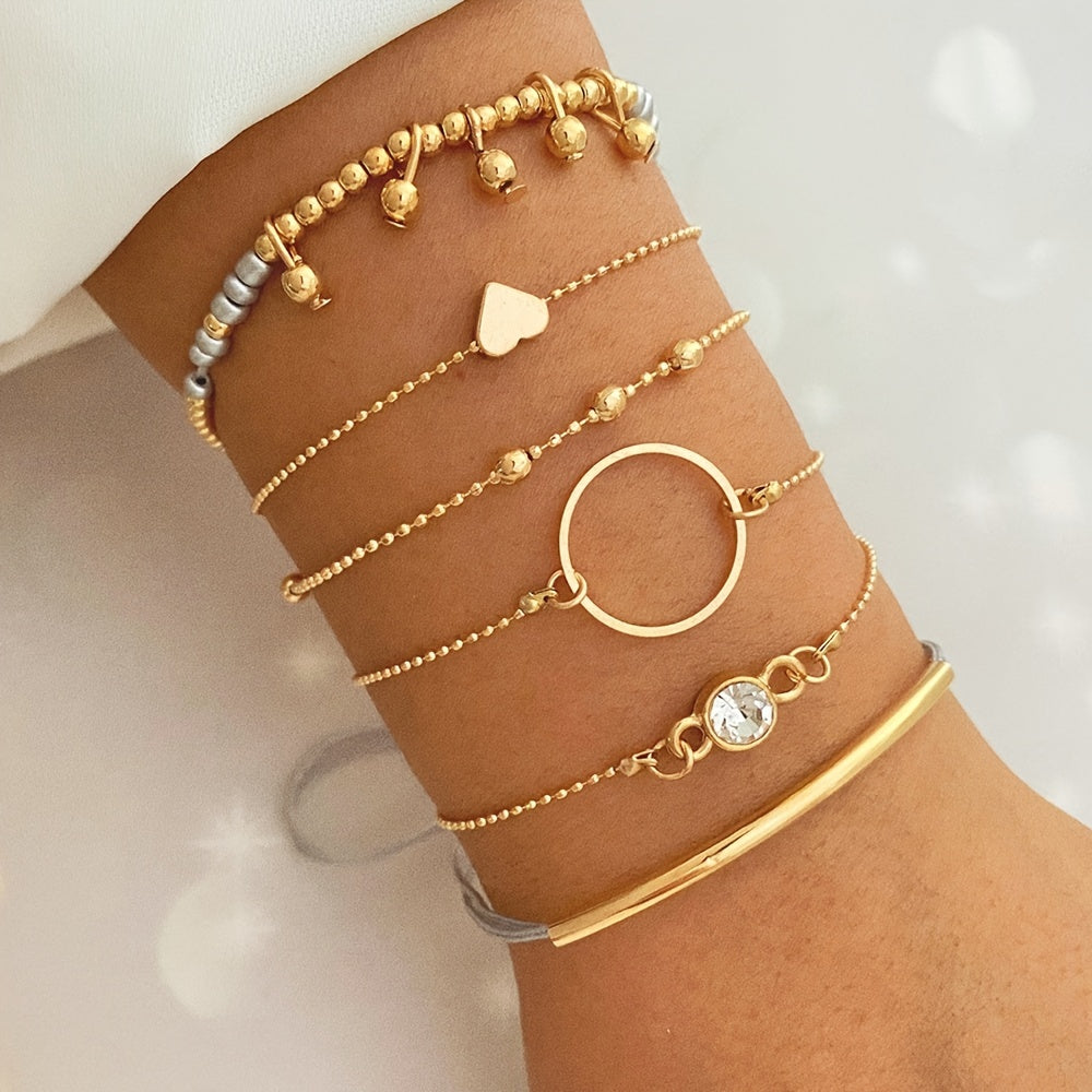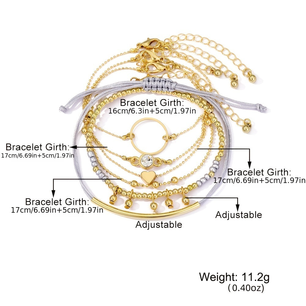 This multilayer bracelet is a perfect gift for women. It features inlaid rhinestones and a stackable design.