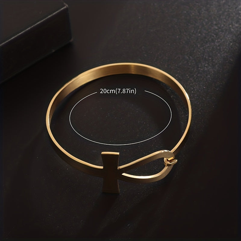 Add a touch of ancient Egypt charm to your look with this stainless steel cross bracelet. Available in golden and silver finishes for men and women.