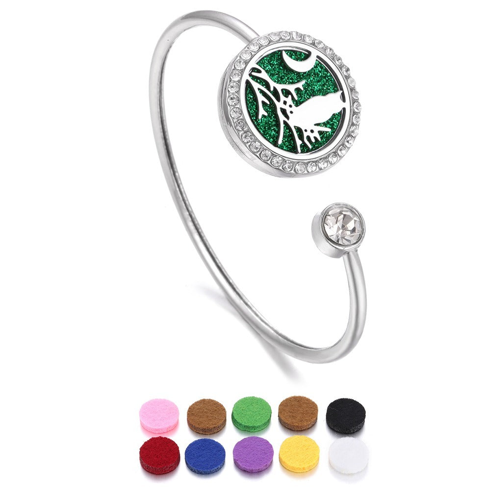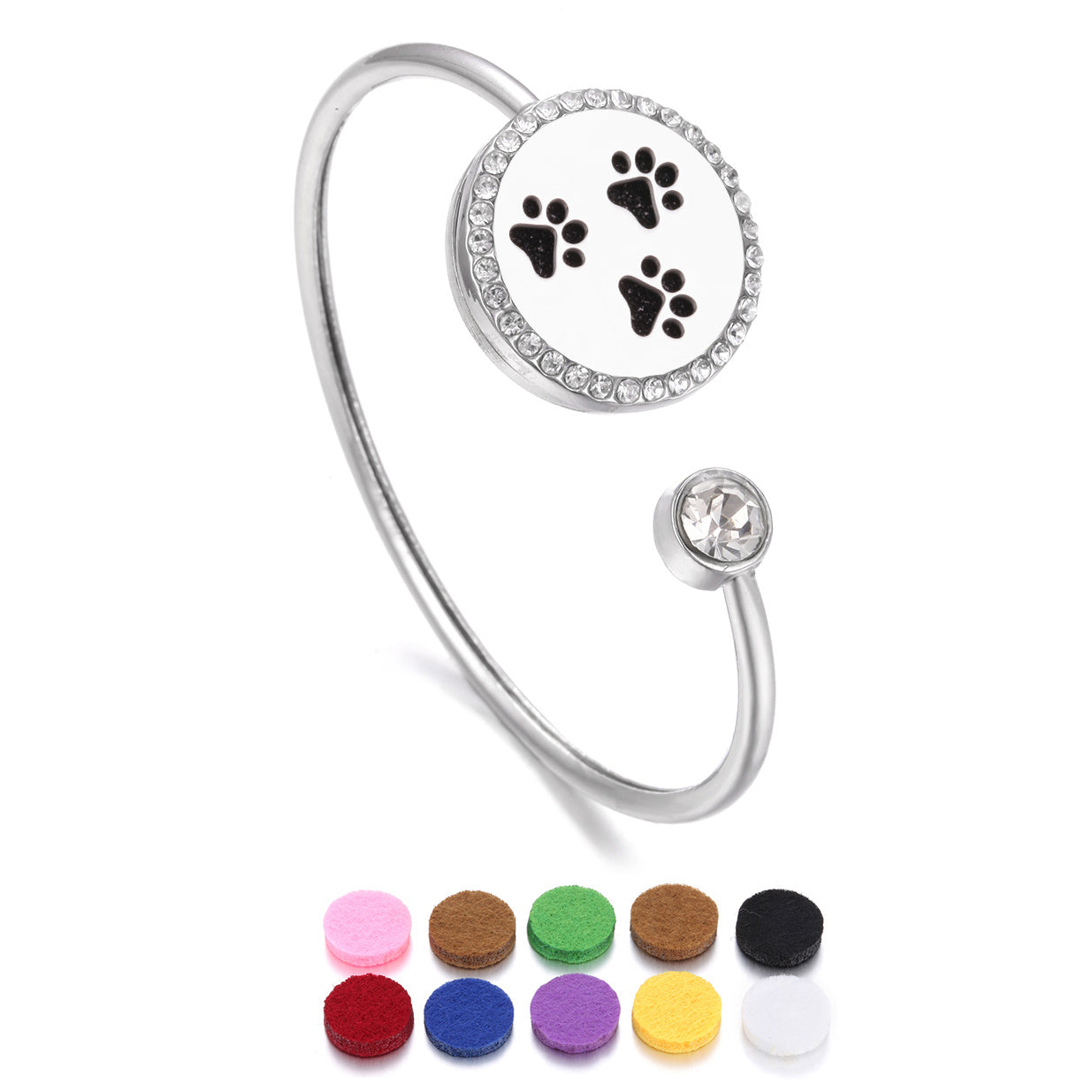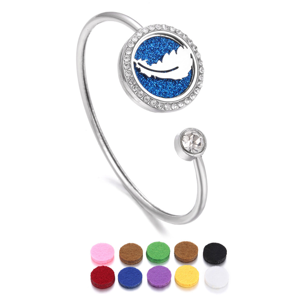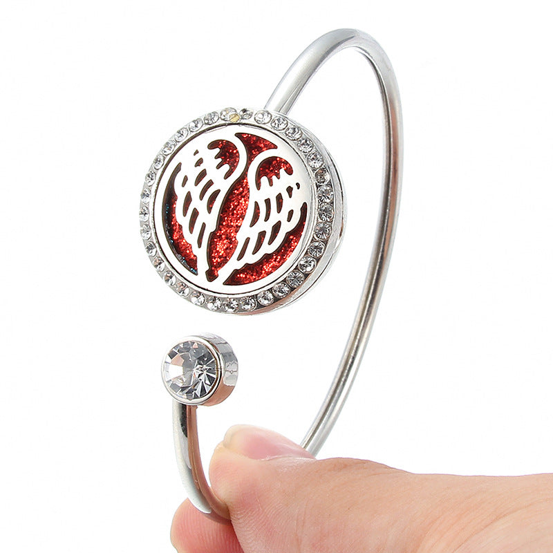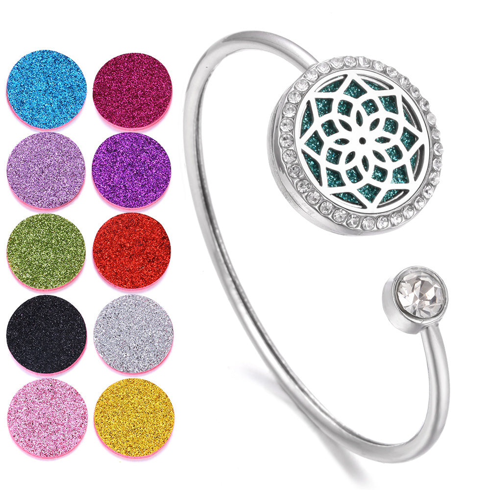 Enjoy the benefits of aromatherapy on the go with this stainless steel open bracelet featuring an essential oil diffuser.