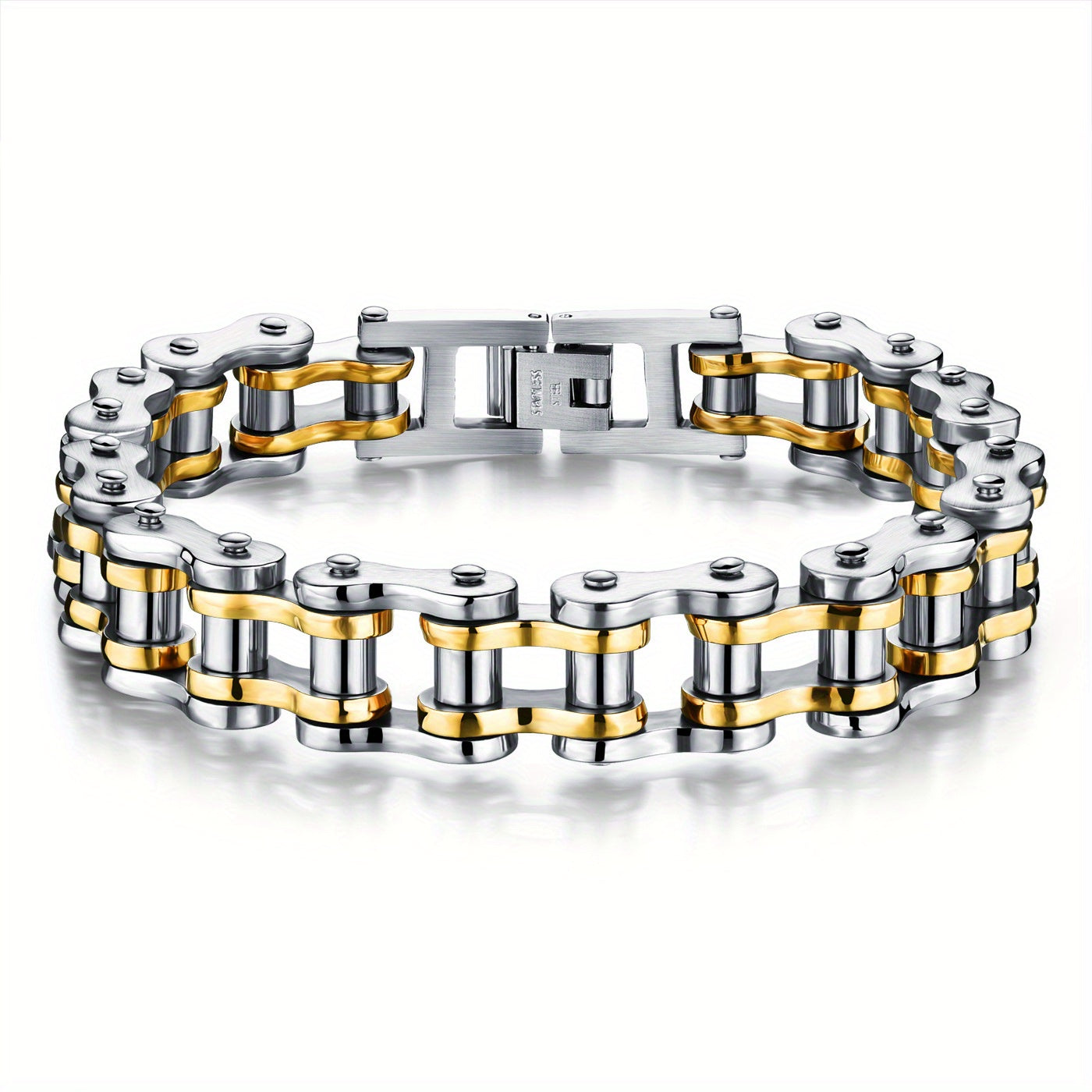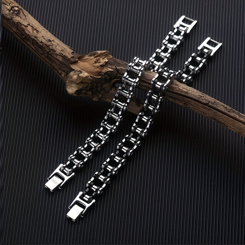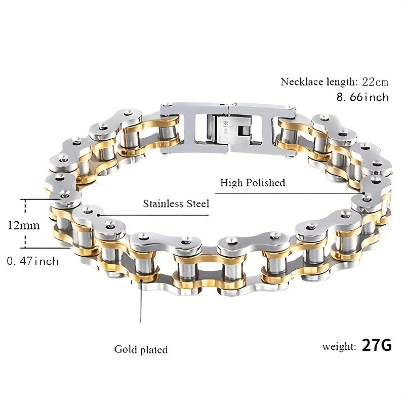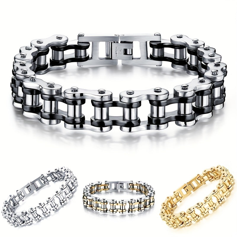 Show off your love for cycling with this stylish bracelet made from stainless steel bicycle chain. Perfect for everyday wear or as a gift for a cyclist.