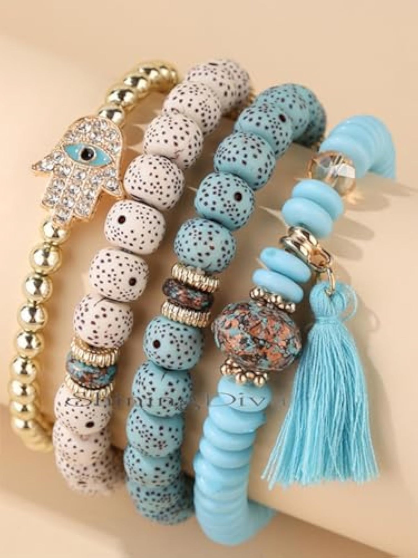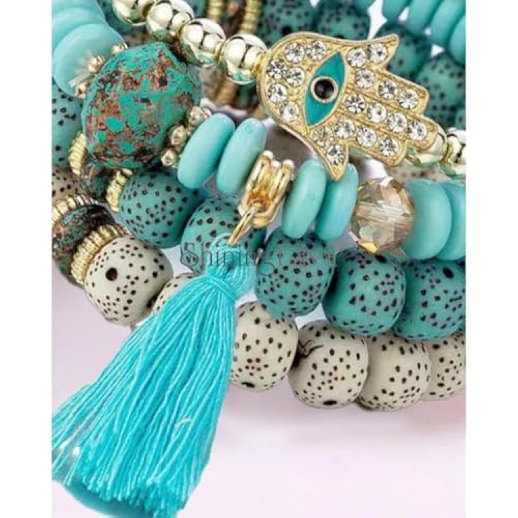 Stylish Evil Eye Boho Bangle Bracelet (Blue)