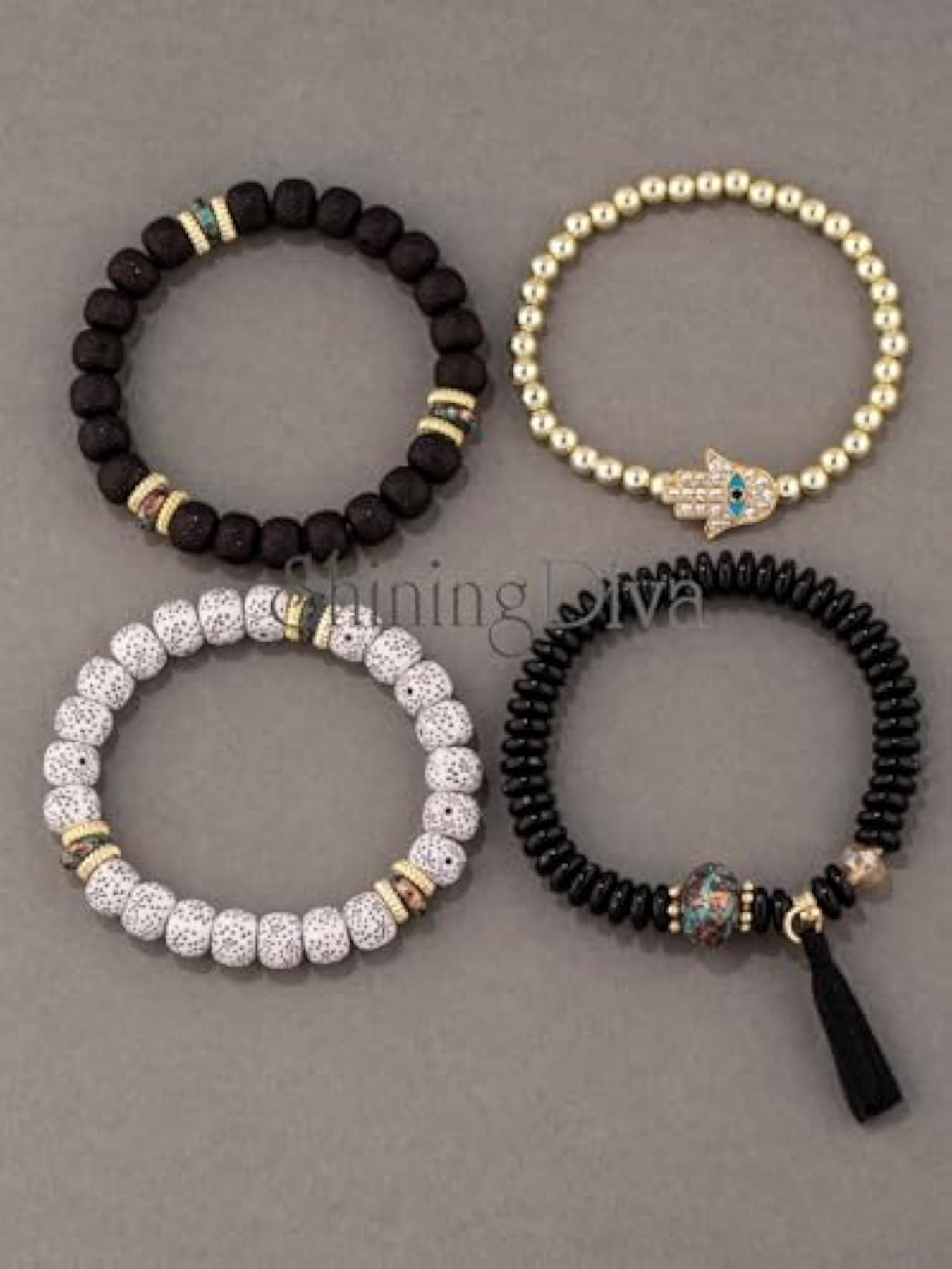 Elevate your style with this chic Evil Eye Bohemian Bangle Bracelet featuring a trendy design in black color. Perfect for adding a touch of boho flair to your outfit.