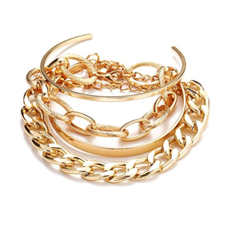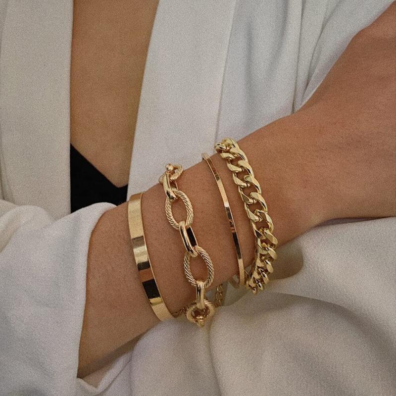 Elevate your look with this set of 4 multilayer plated bangle bracelets. Perfect for adding a touch of style to any outfit.