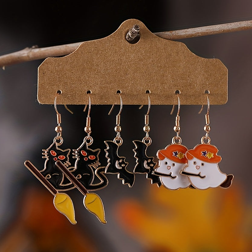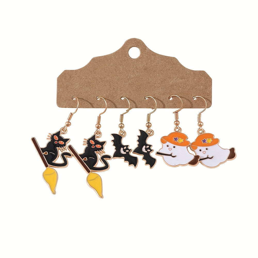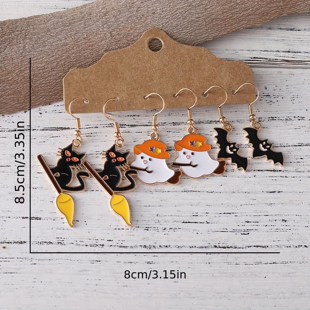 3 Pairs Halloween Cat Ghost Bat Earrings Set