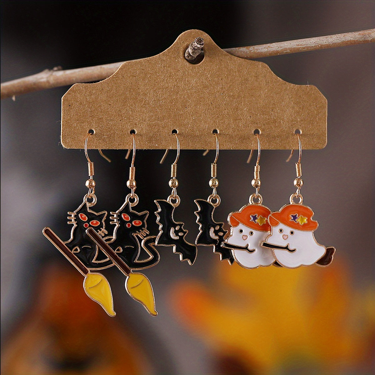 • Vintage Halloween-themed enamel earrings