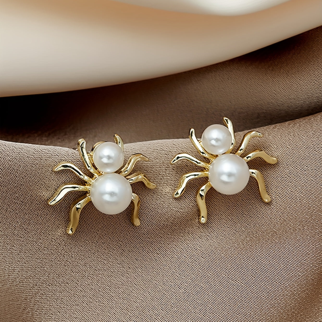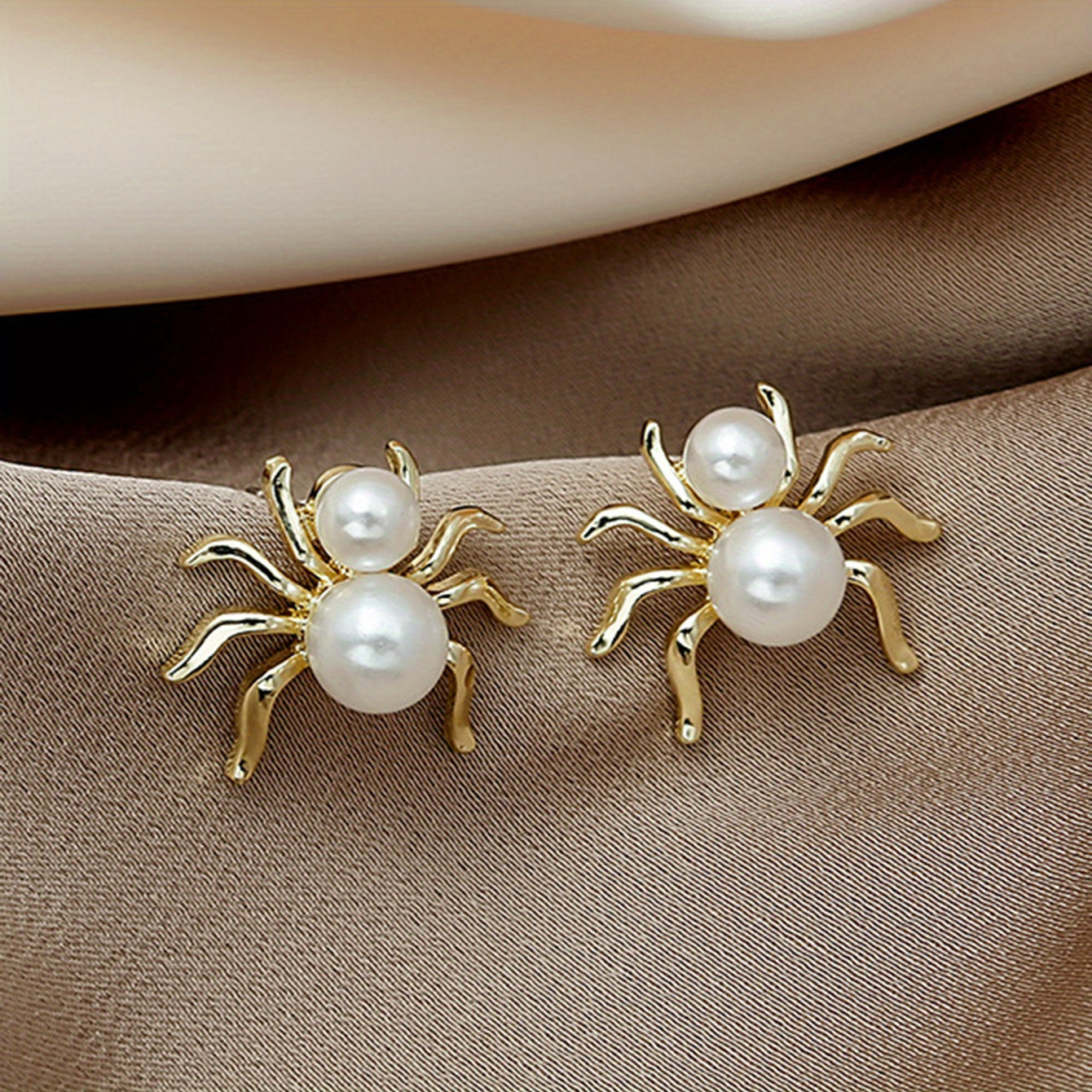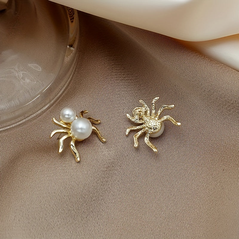 Add a touch of retro creativity to your look with these 3D spider stud earrings featuring inlaid faux pearl, perfect ear jewelry for a unique style statement.