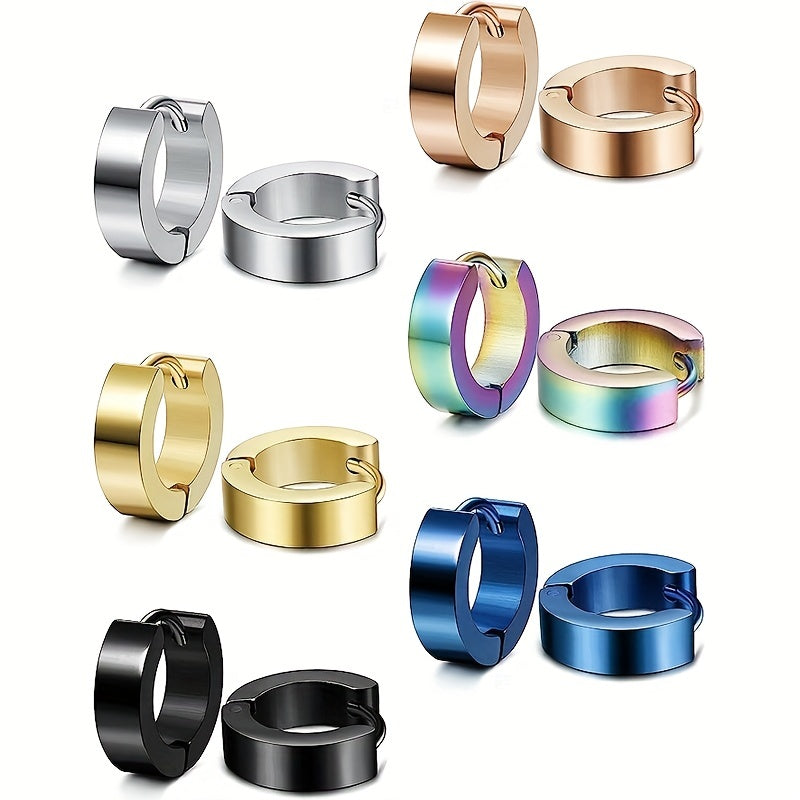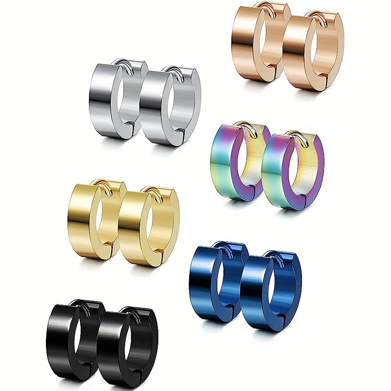 Get a stylish and minimalist look with this set of 6 pairs of stainless steel earrings. Perfect for everyday wear or special occasions.