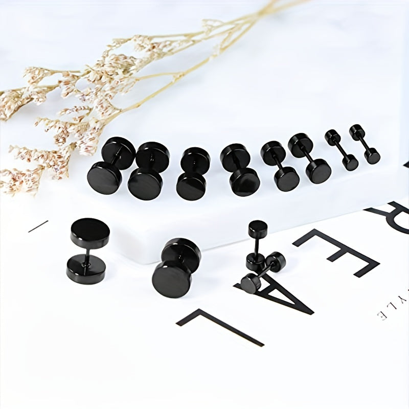 Get this 6 pairs set of stainless steel men's stud earrings that resemble gauges. These earrings are perfect for creating a trendy look with a faux gauge effect. Available in sizes 3mm and 8mm.