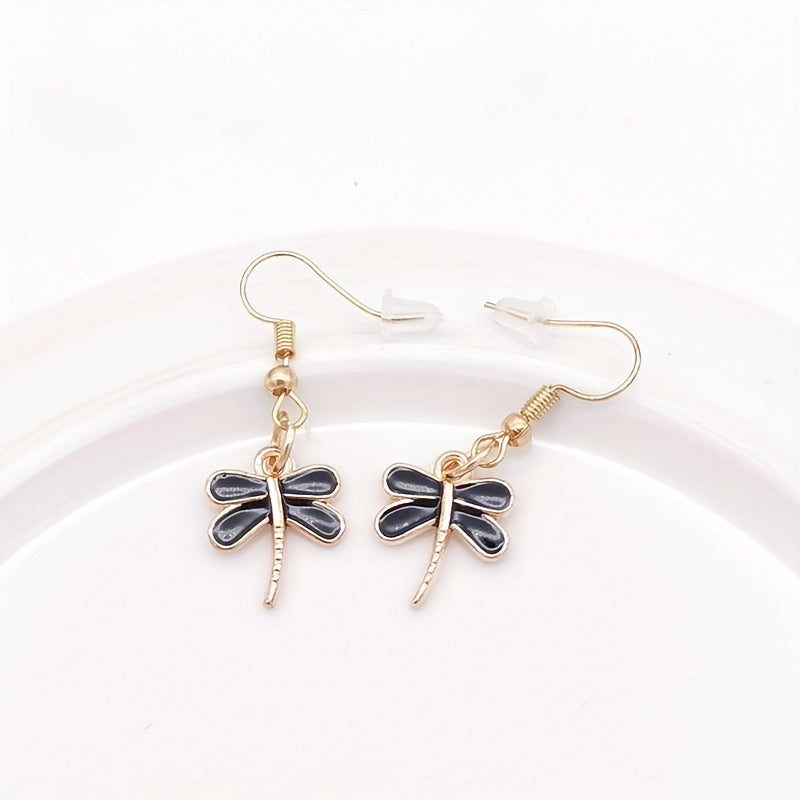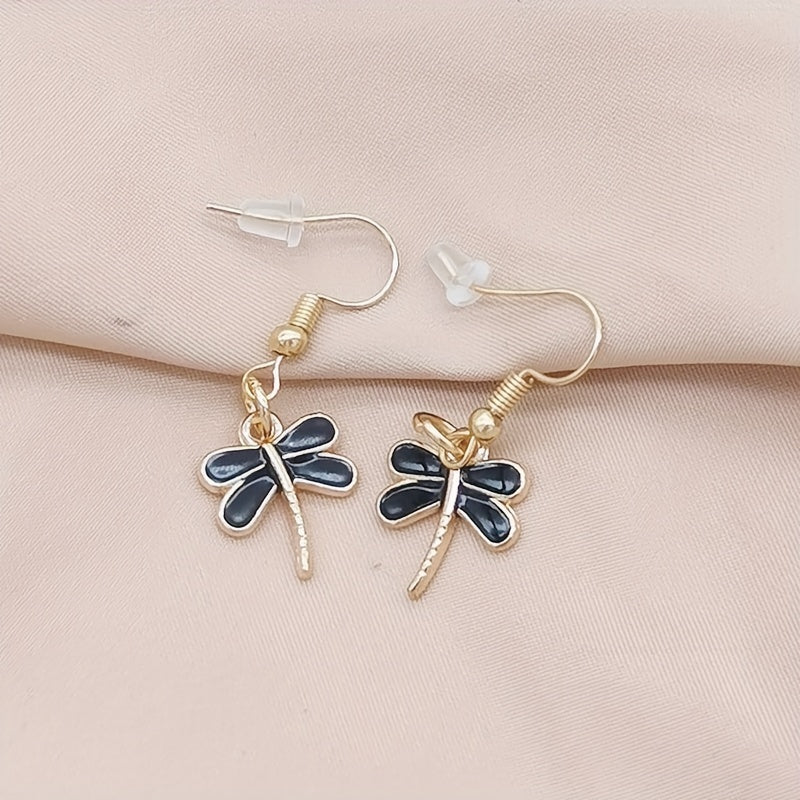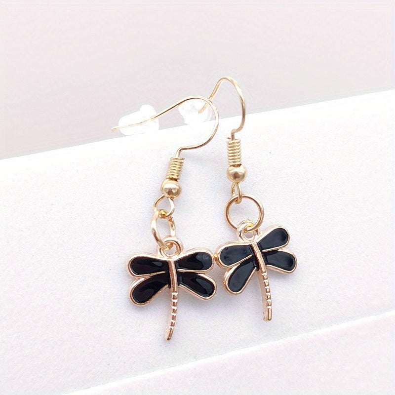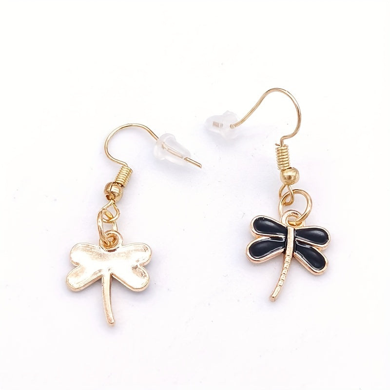 Add a touch of whimsical elegance to your outfit with these unique dragonfly earrings featuring a funky drip oil design.
