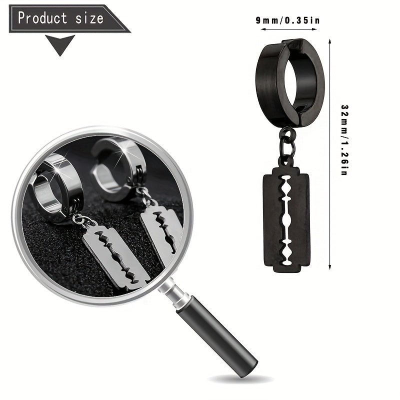 Add an edgy touch to your look with this blade pendant earring. Made of durable stainless steel, it features a punk style design that will enhance your casual outfits.