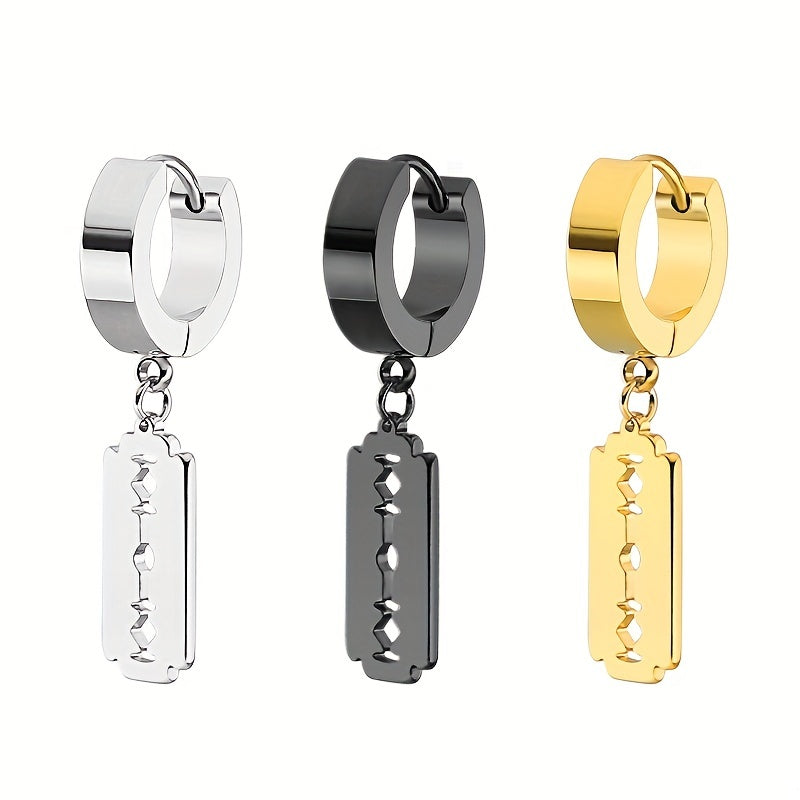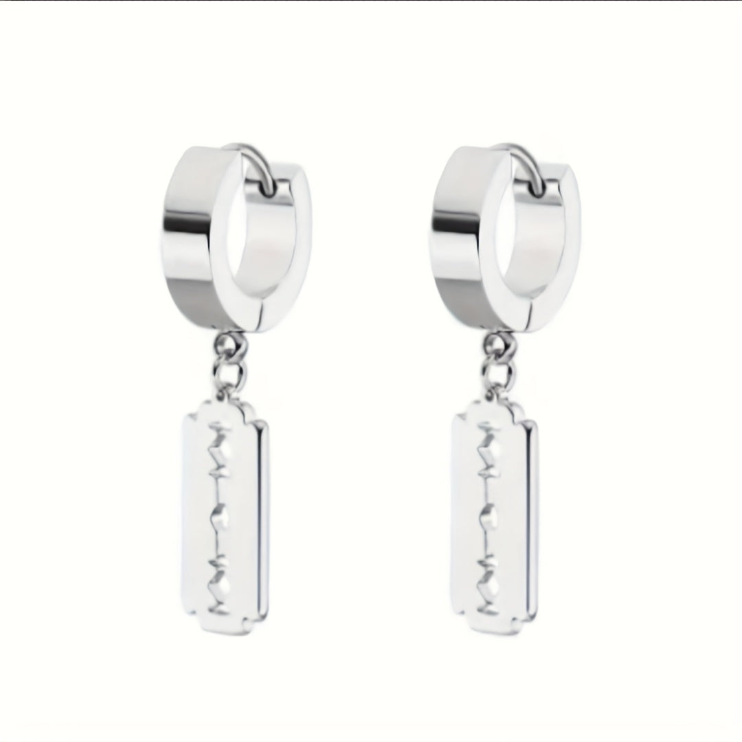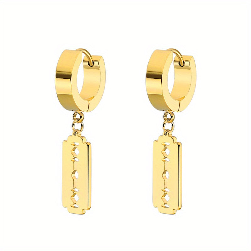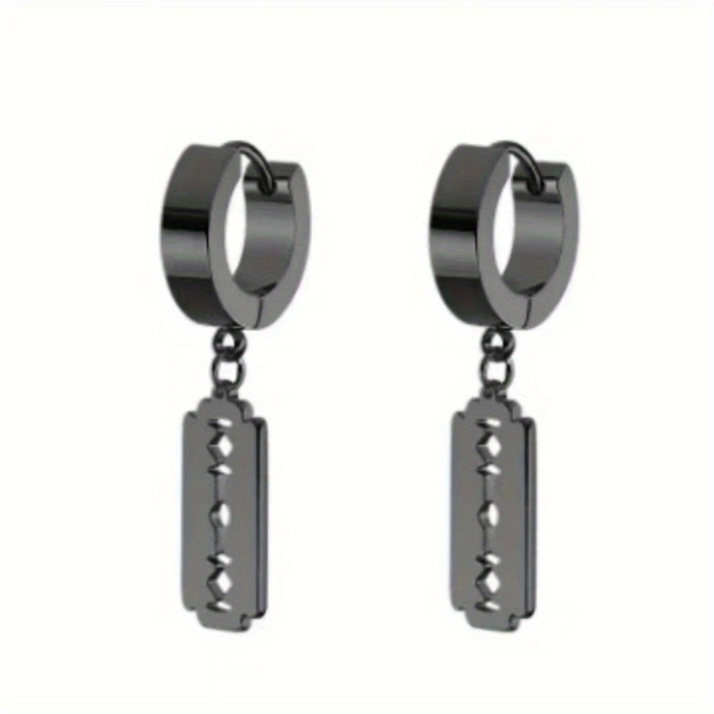 Elegant blade pendant earrings made from durable titanium steel with a stylish round flat design.