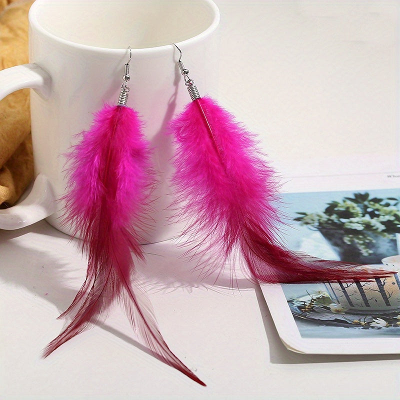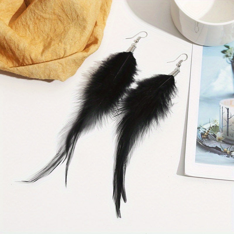 These creative dangle earrings feature a bohemian style design with feathers pendant, perfect for a minimalist look. Made of zinc alloy, these earrings make a great gift for women.