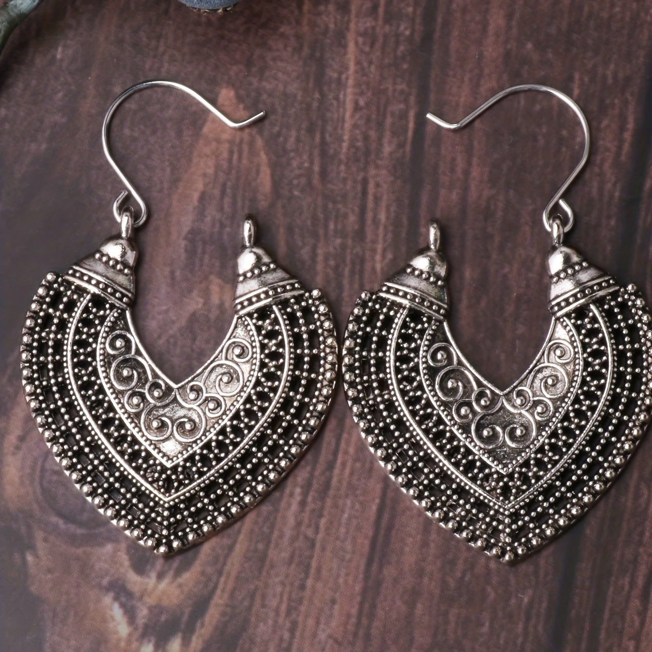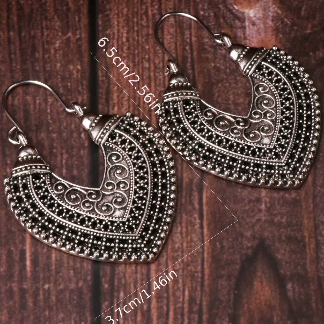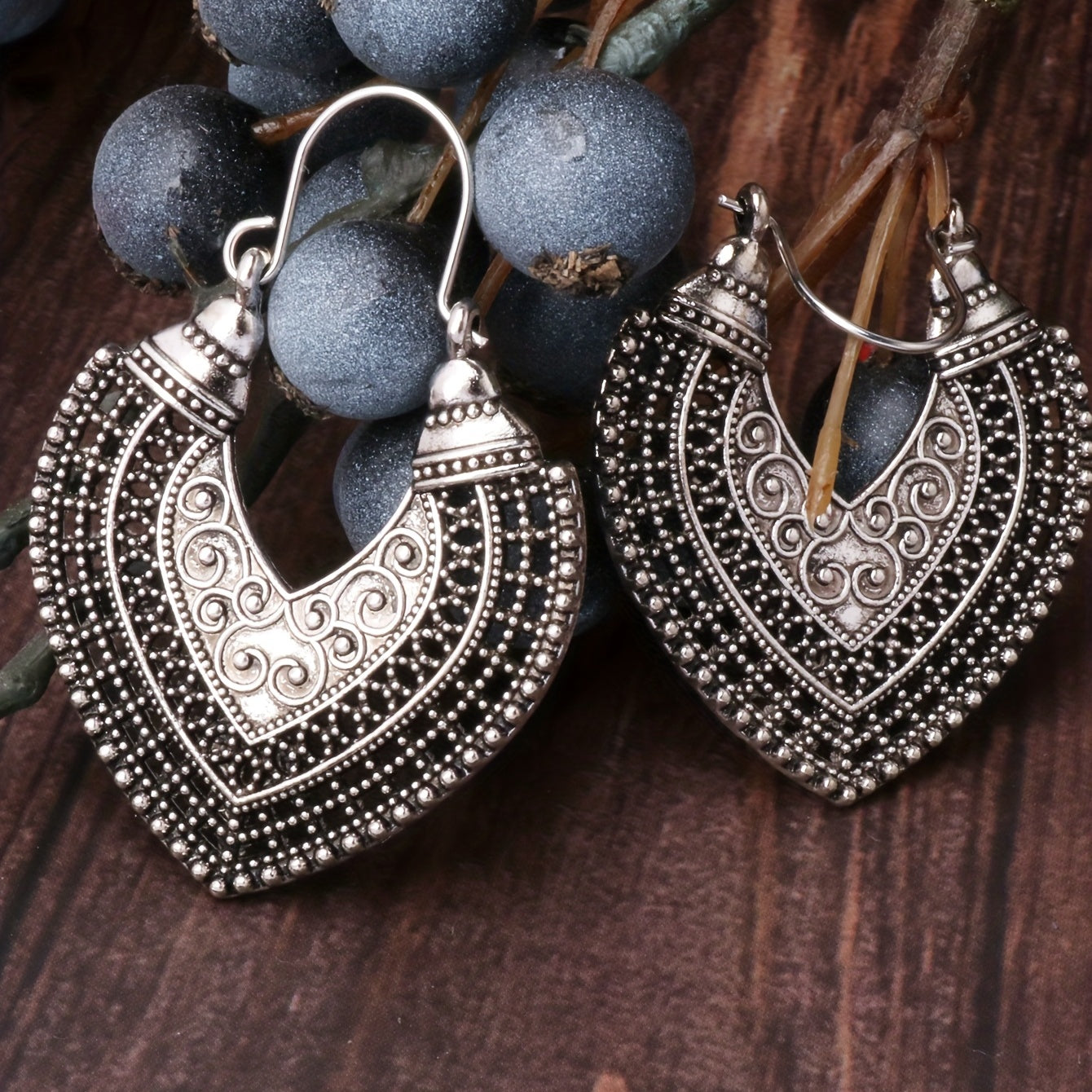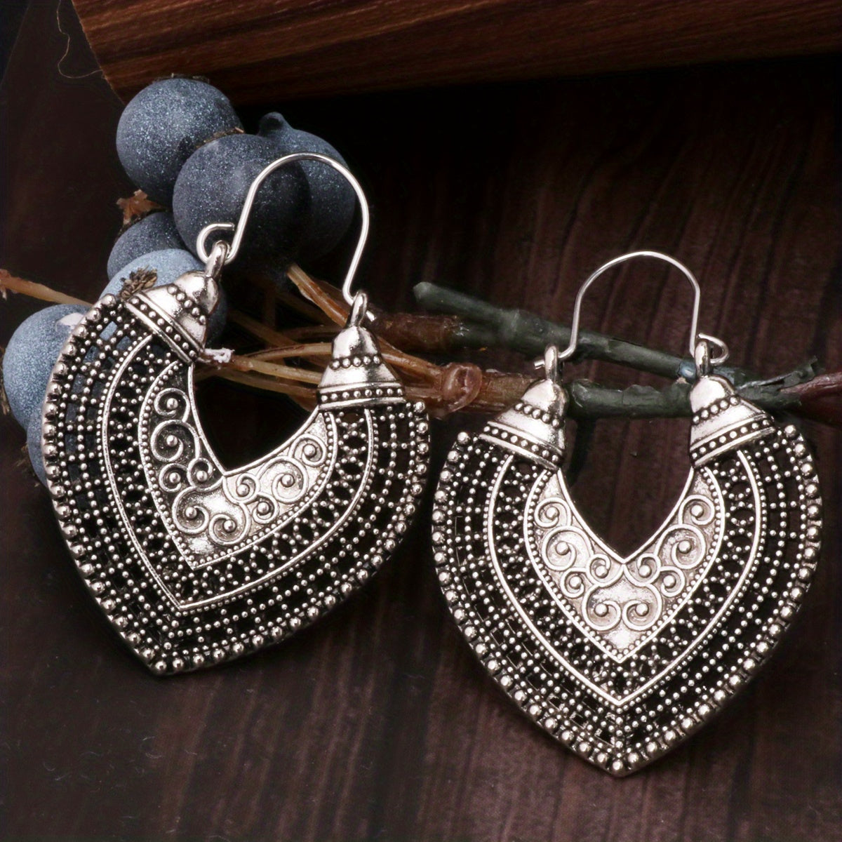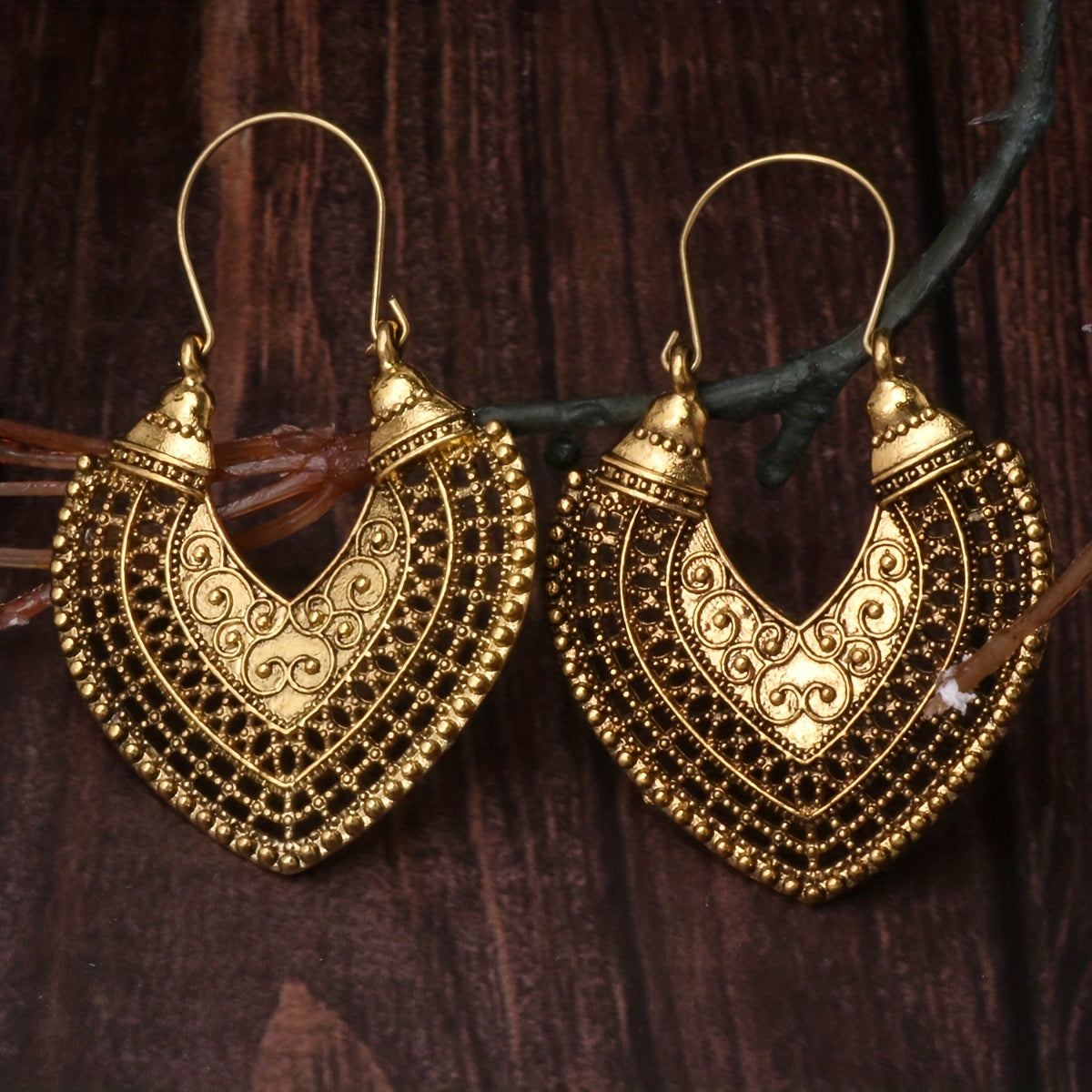 Elevate your look with these golden and silvery heart hollow dangle earrings. Made of zinc alloy, these retro bohemian style earrings are perfect for daily wear.