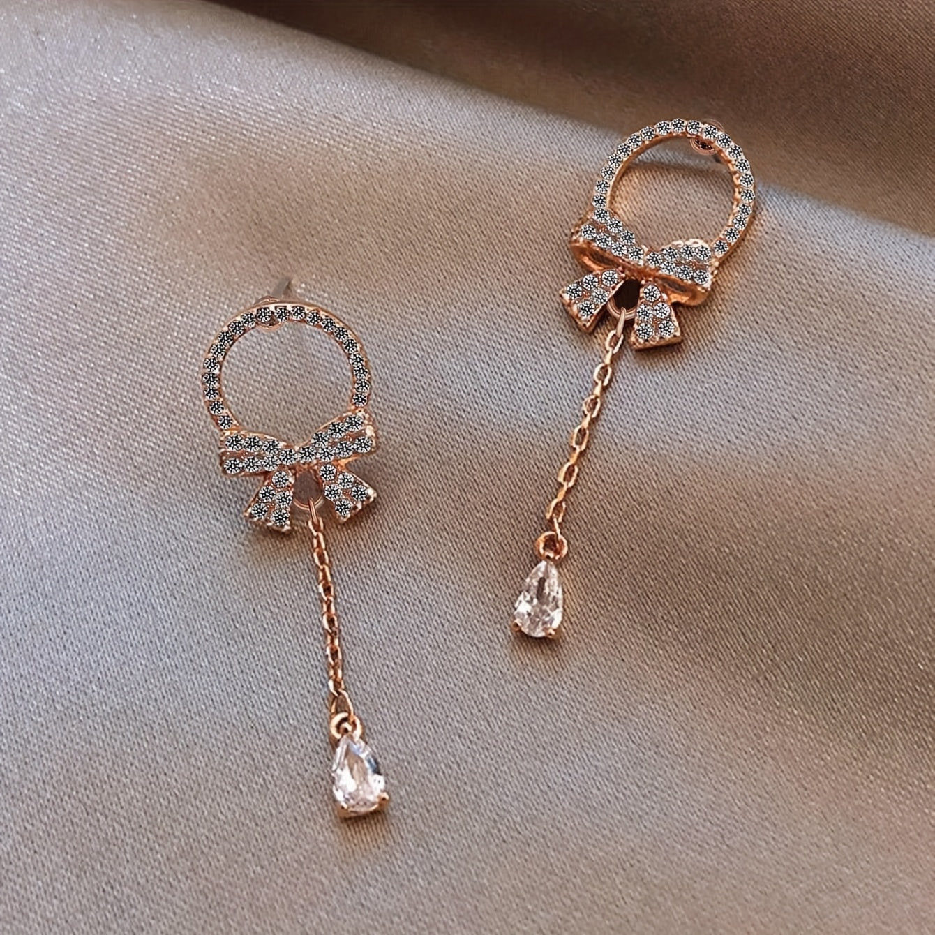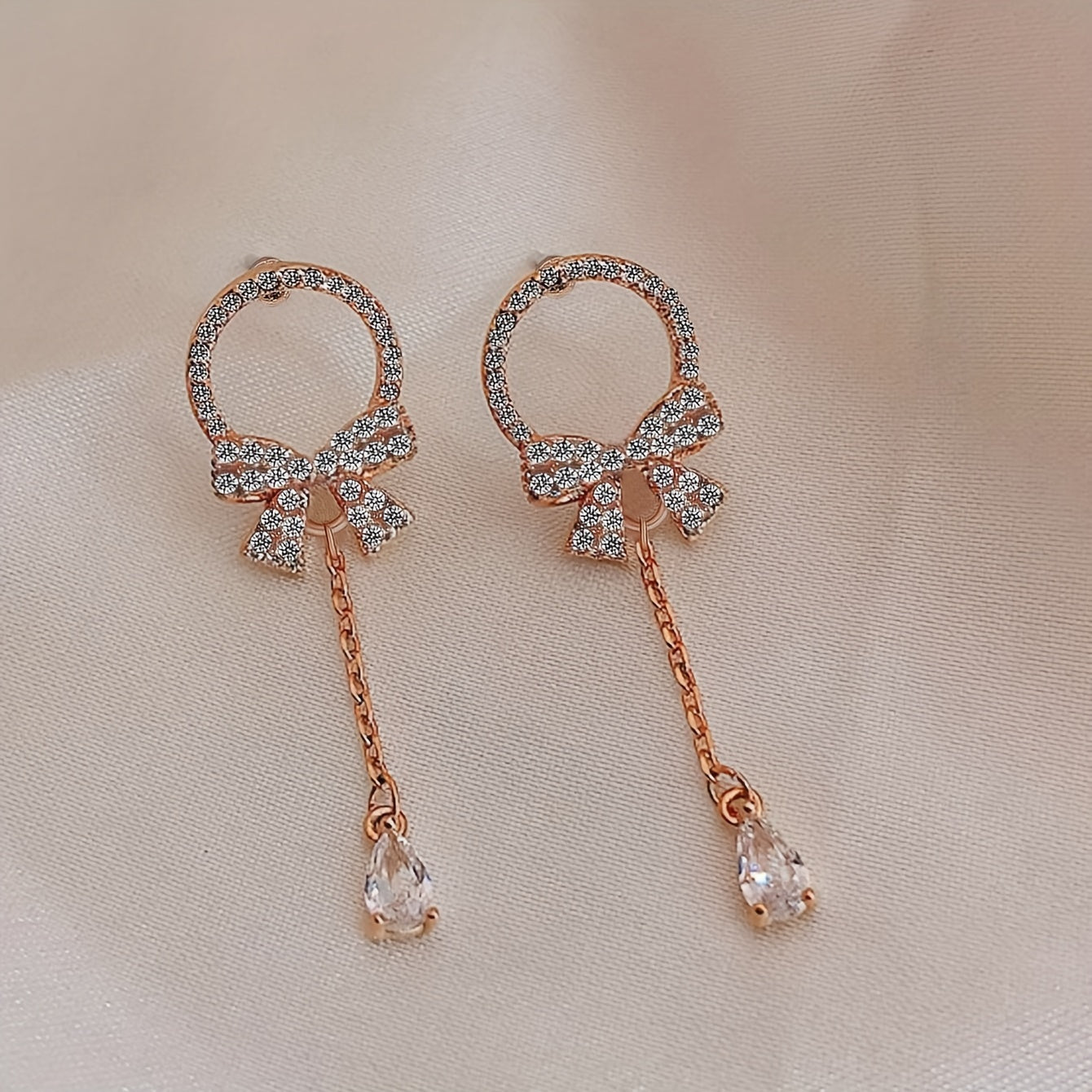 Bow Water Drop Pendant Stud Earrings Women's Jewelry