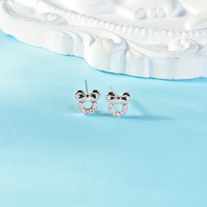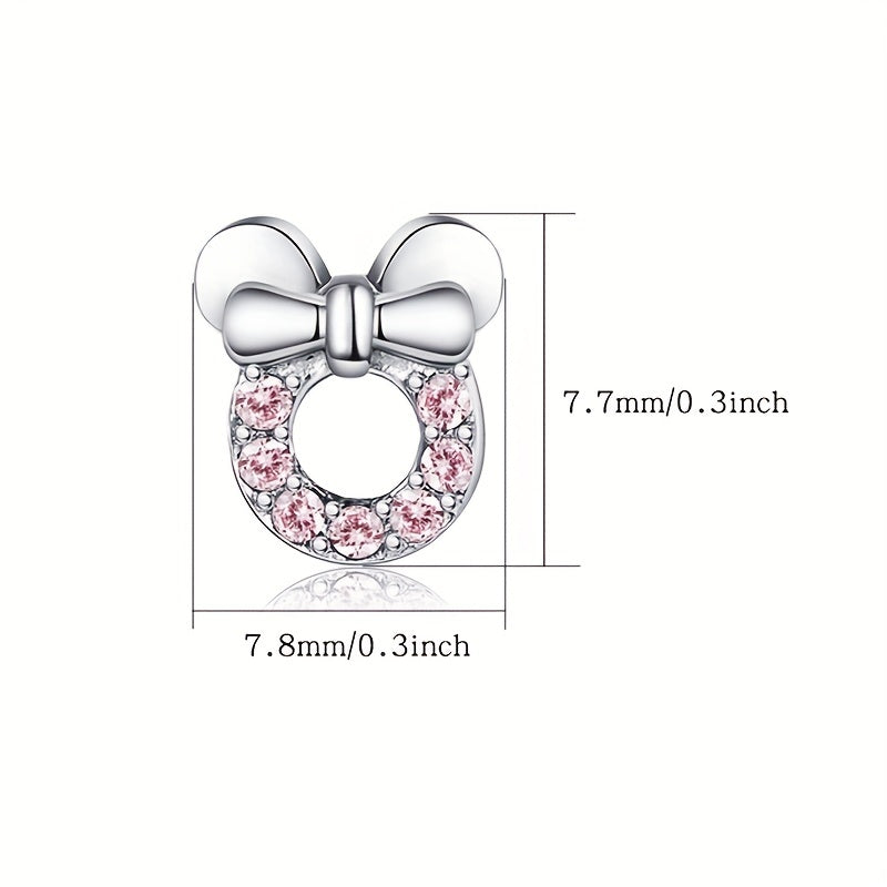 These stud earrings feature a charming bowknot hollow circle design with a pink rhinestone accent. Made of 925 sterling silver, these earrings make a lovely gift for women.