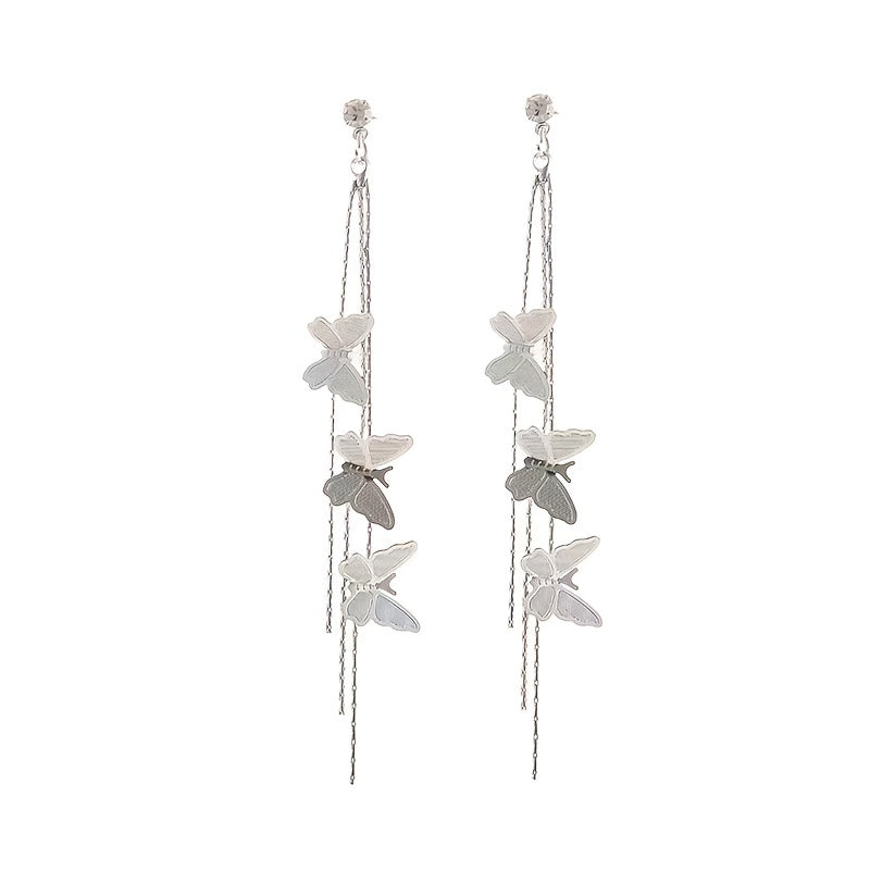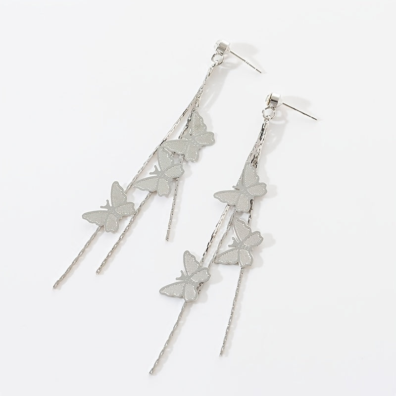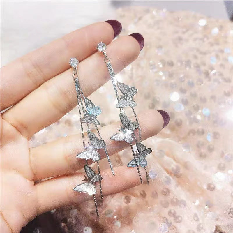 Butterfly Tassel Long Earrings 925 Silver Needle Jewelry For Women Girls